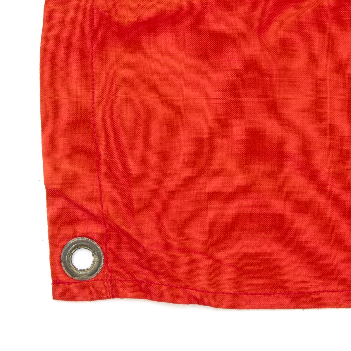 This cotton flag features multi-piece construction and is single sided with grommets located in each corner. These grommets were secured to tension lines that secured the flag to the back of the tank laying flat. Thereby the flag was only visible to persons located above the tank. Generally these flags were intended to be seen by German airplanes so as not to be struck by friendly fire.