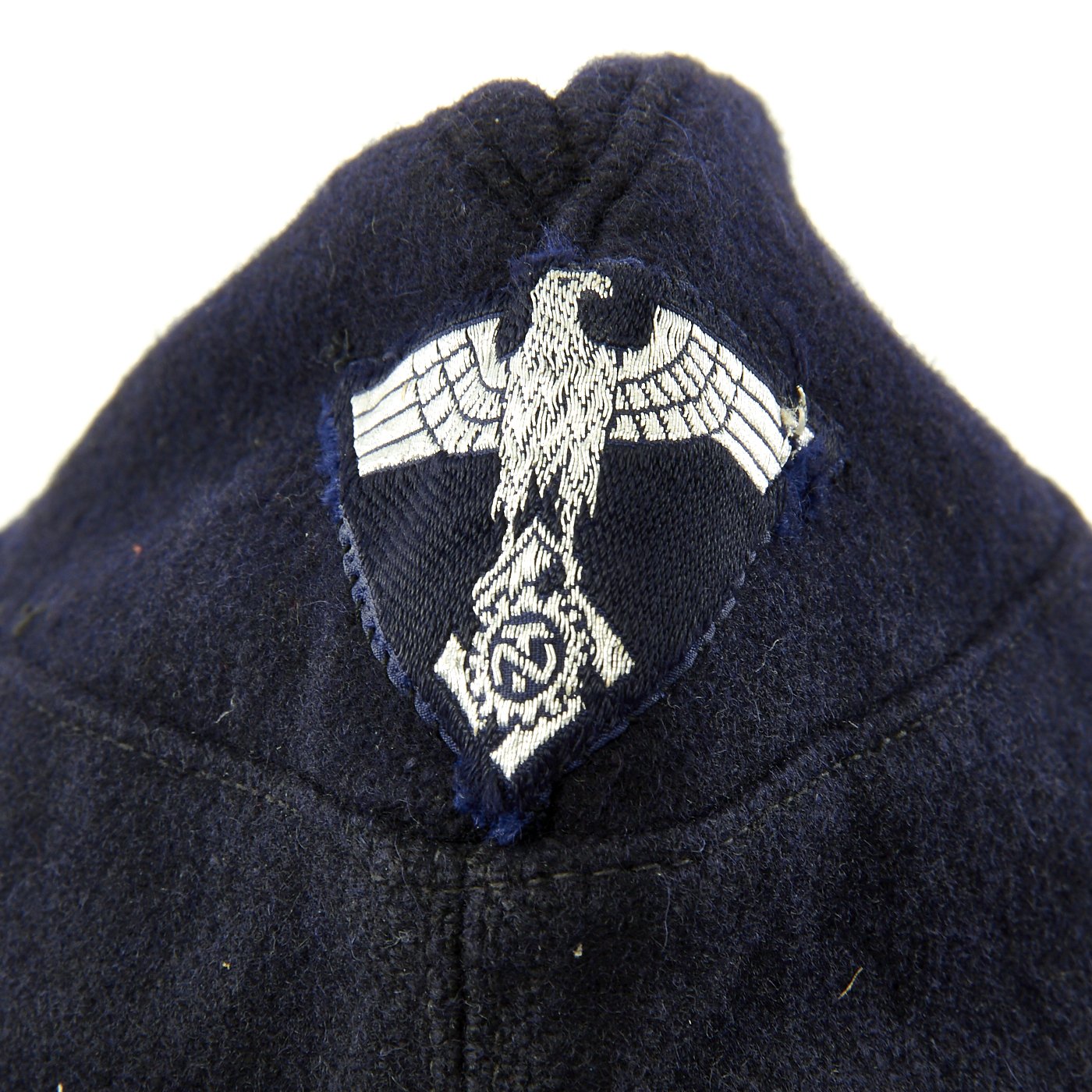 Original Item: Only One Available. The Technical Emergency Corps - (Technische Nothilfe) TENO or TN- was formed on September 30, 1919, technical volunteers who were called to duty in the event of a public disaster. The Corps provided essential services during emergencies with its personnel being highly trained in fire fighting, decontamination. This is a very nice and hard to find example of a German WWII TENO overseas cap (Schiffchen). The overseas cap, was nicknamed in German military slang as Schiffchen, or literally "little ship" as it resembled an up-turned row-boat, was standard issue for corps.