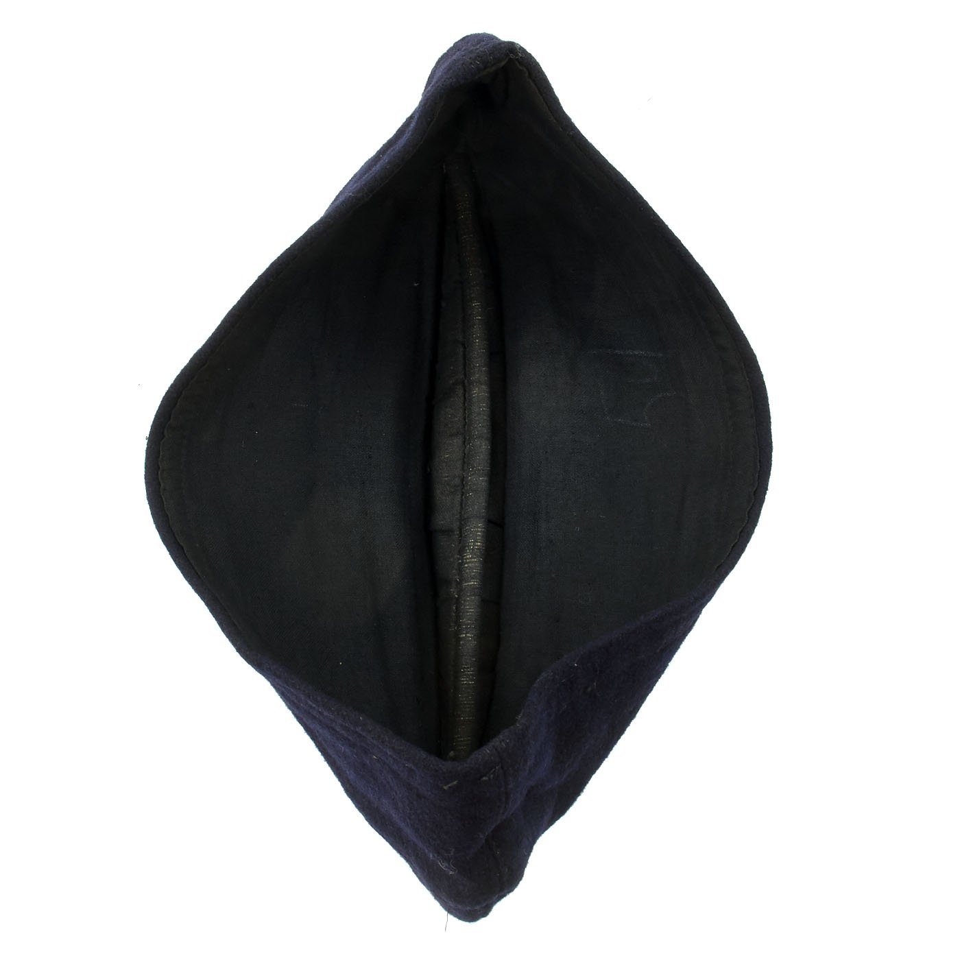 This example is constructed of a dark navy blue wool exterior, with a black cotton lining. The front is marked with a very nice BeVo style embroidered TENO eagle, with the interlocking TN in a gear over the swas. We can see a faint "59" marked in chalk, so that may be the size.