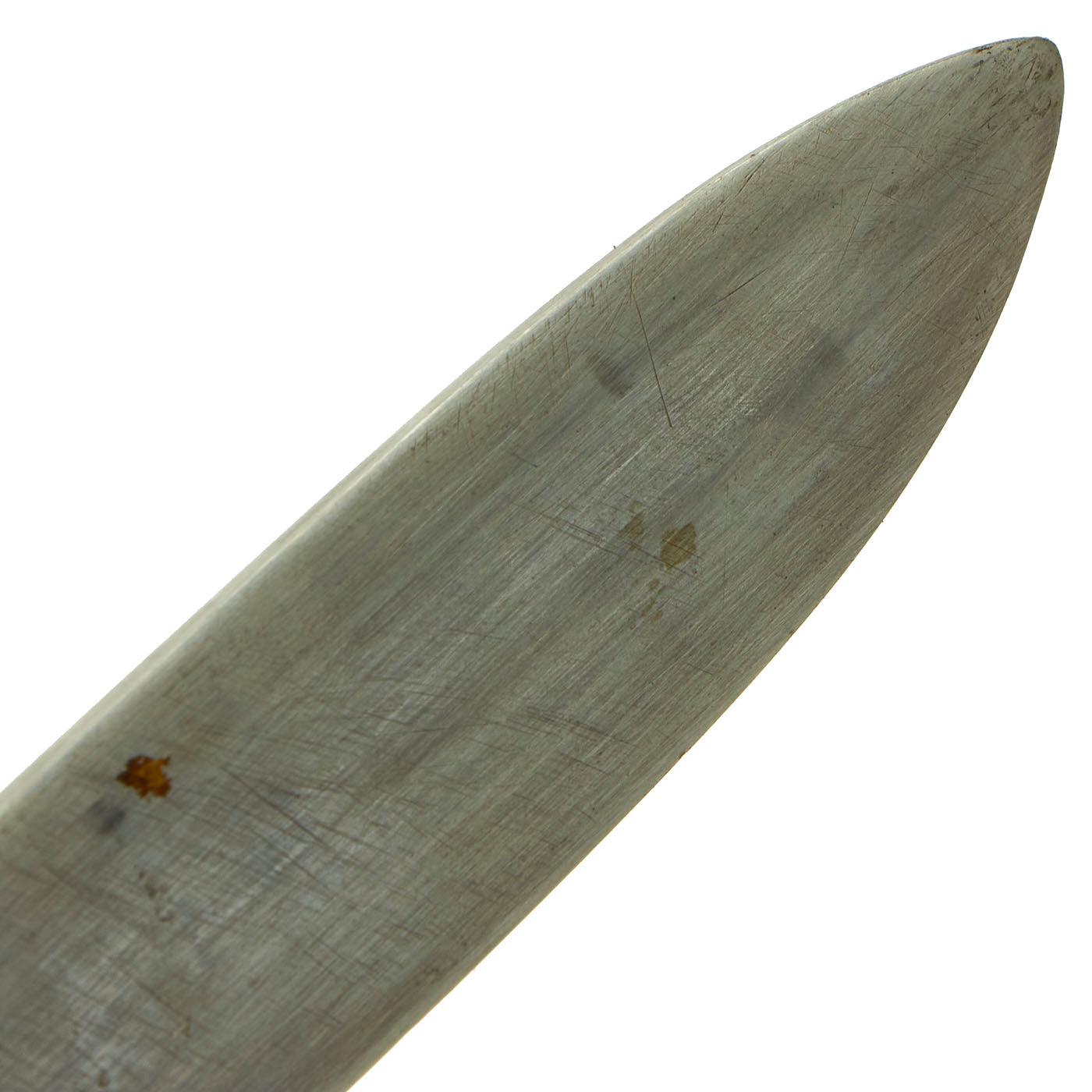 Unlike the early pattern knives, these have a thicker blade with a raised ricasso, which significantly strengthened the blade. There is no visible acid etched motto on the blade, but it is possible that it was removed during use and polishing. We have seen blades with only the RZM mark that still have the motto.