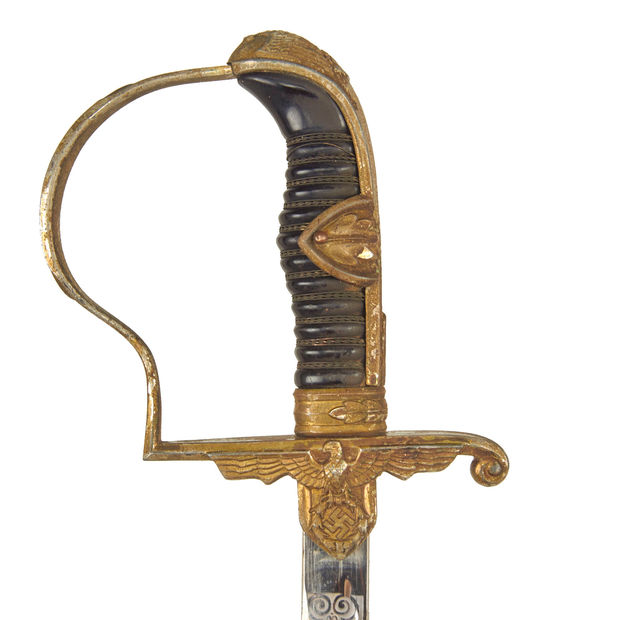 Original Item: Only One Available. This is a very nice example of the very desirable "Prinz Eugen" (Prince Eugene) variation of the popular Feldmarschall (Field Marshal) series of German "Dove Head" officer swords. As with all of this series, it was made by famed firm Carl Eickhorn of Solingen, the legendary "City of Blades" in western Germany. Their trademarked Field Marshal series was quite popular, and had many different variations. The Prince Eugen style was very popular among SS officers before their own M36 Officer's degen sword was introduced.