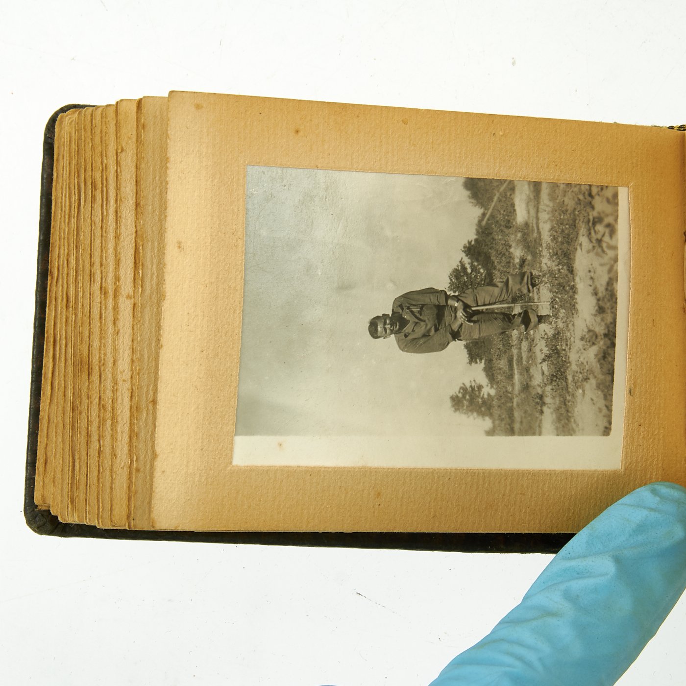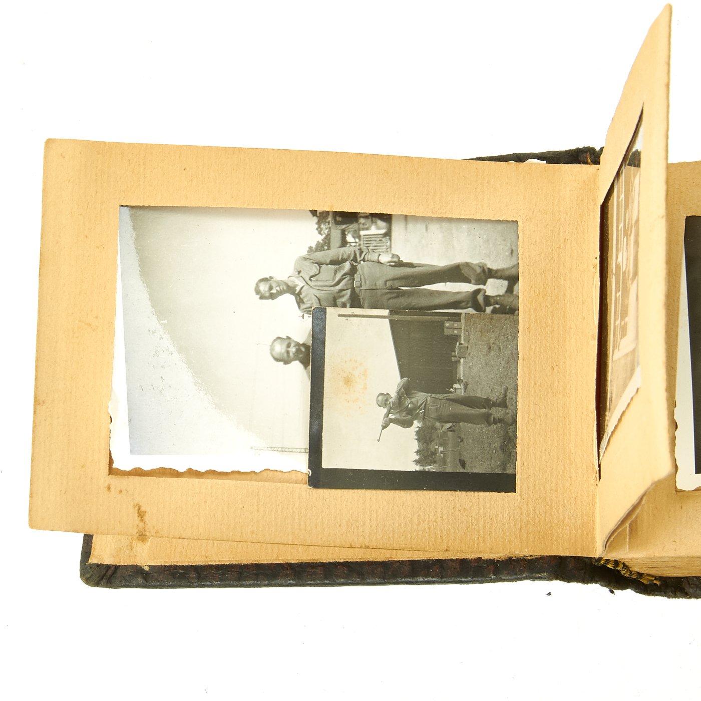 Original Item: One-of-a-kind. This is a German WWII small pocket size photo album that was captured and reused by a USGI. The inside cover of the album reads in hand written ink: