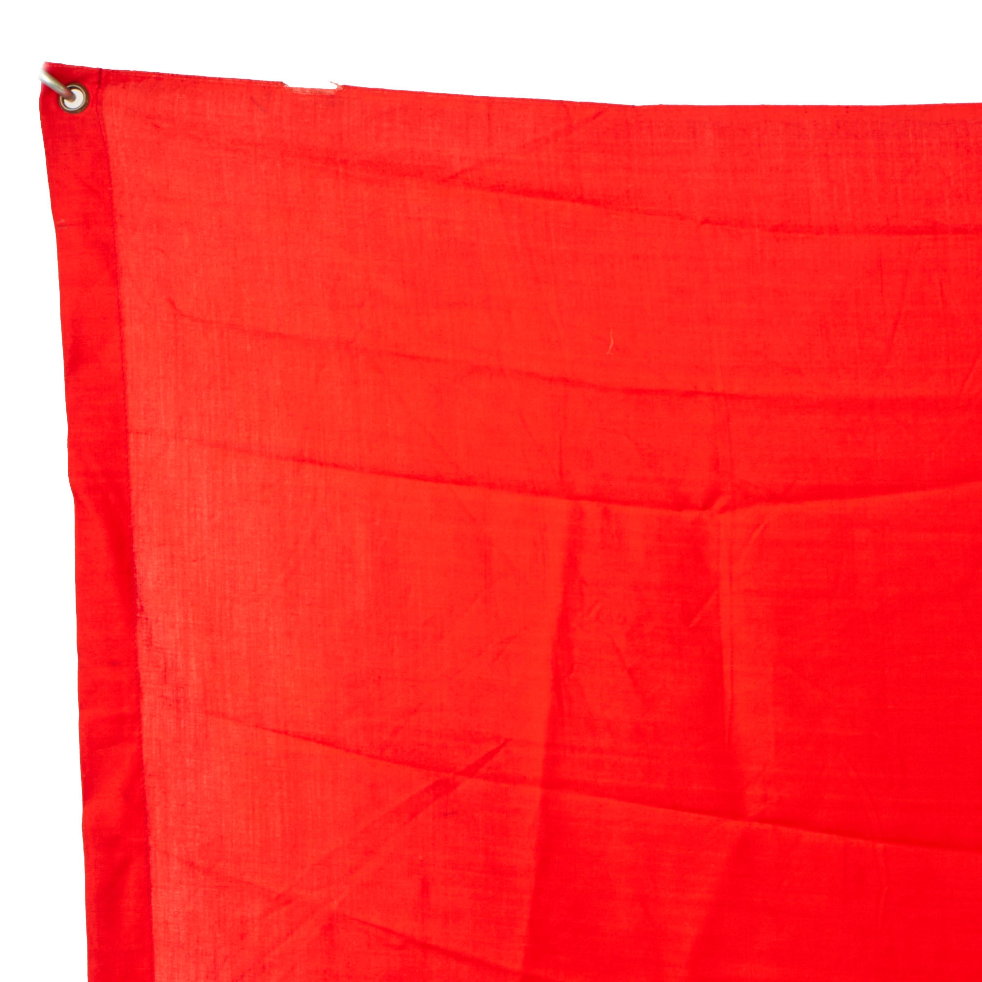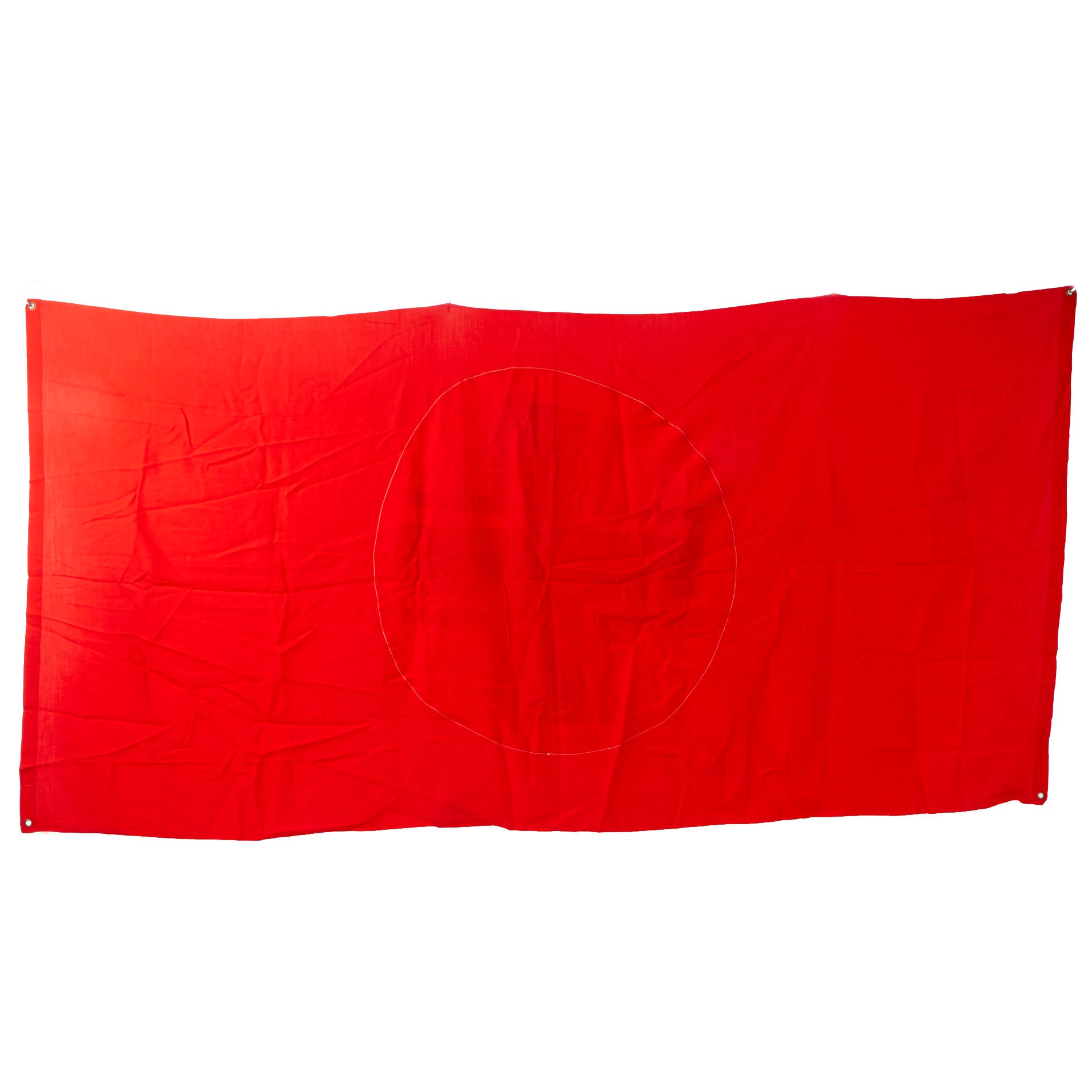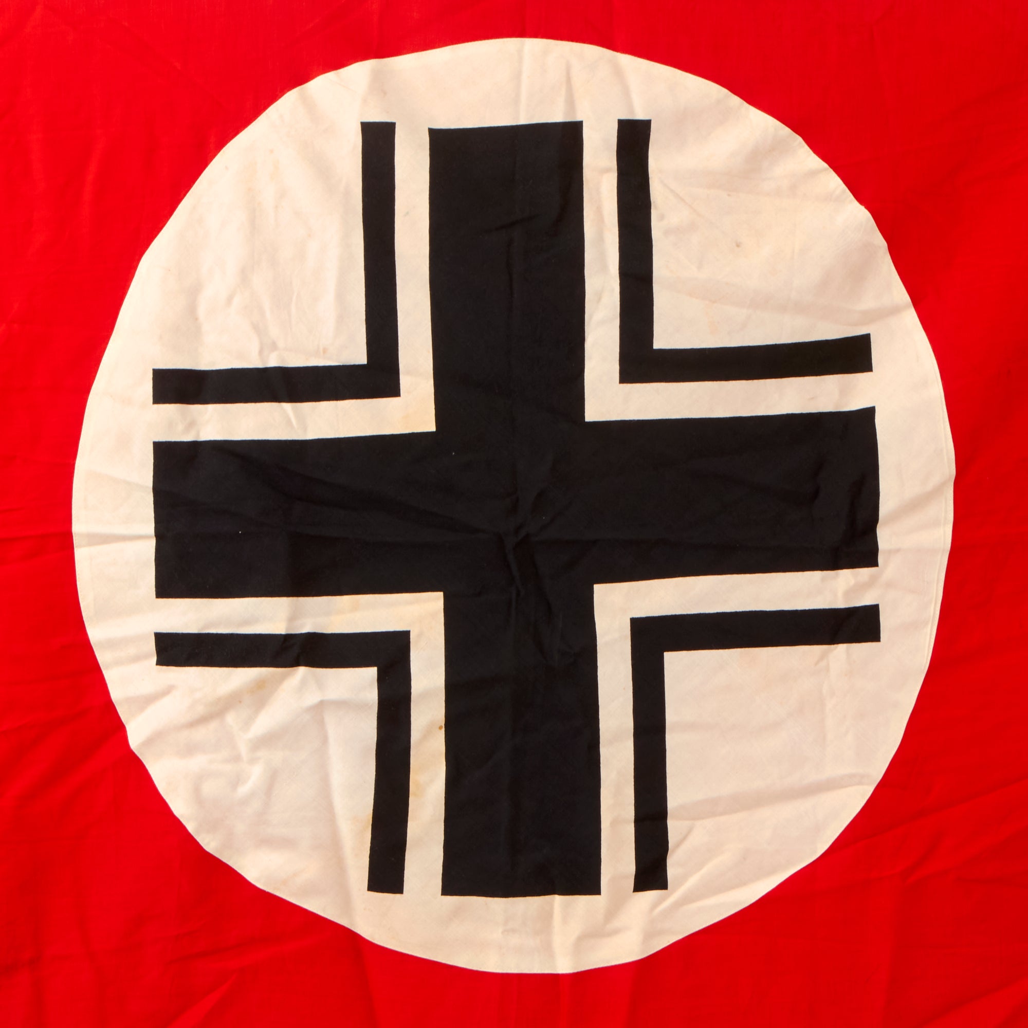 Original Item: Only One Available. This is a lovely unissued original German WWII Balkenkreuz (Beam Cross) identification flag used for Panzer tanks and other vehicles. It is in lightly used condition and measures approximately 39" x 76" inches. The flag is constructed of cotton and has four brass plated steel grommets (one in each corner), which were used to secure the flag to the back of the vehicle, facing the sky in order to prevent friendly fire from German aircraft. The flag is a multi-piece construction with a Balkenkreuz (beam cross) dyed onto a white background stitched onto the red base.