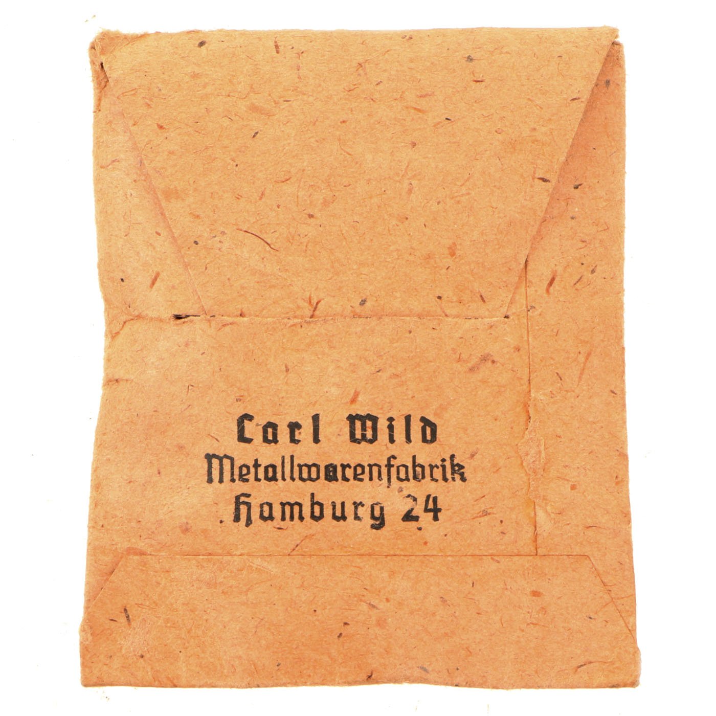 It comes complete with an original 2 1/2" by 2" paper packet, which is marked with the award name on the front in German "Black Letter" type: