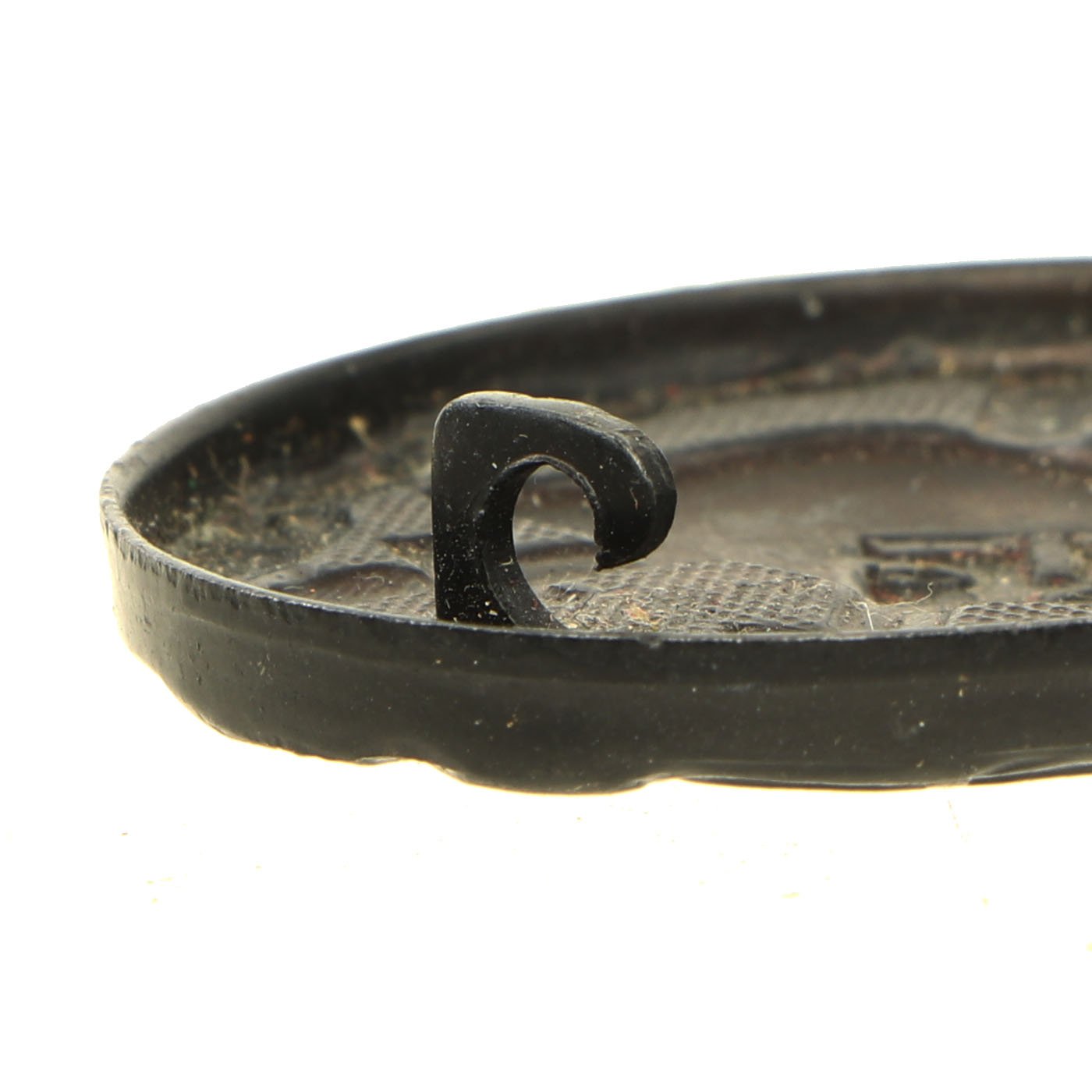 The German Wound Badge (Verwundetenabzeichen) was instituted during the First World War to recognize those wounded in the conflict. It was designed using a World War One style Imperial German helmet as the main motif. The helmet was set on top two crossed swords against a pebbled background and surrounded by a laurel leaves wreath.