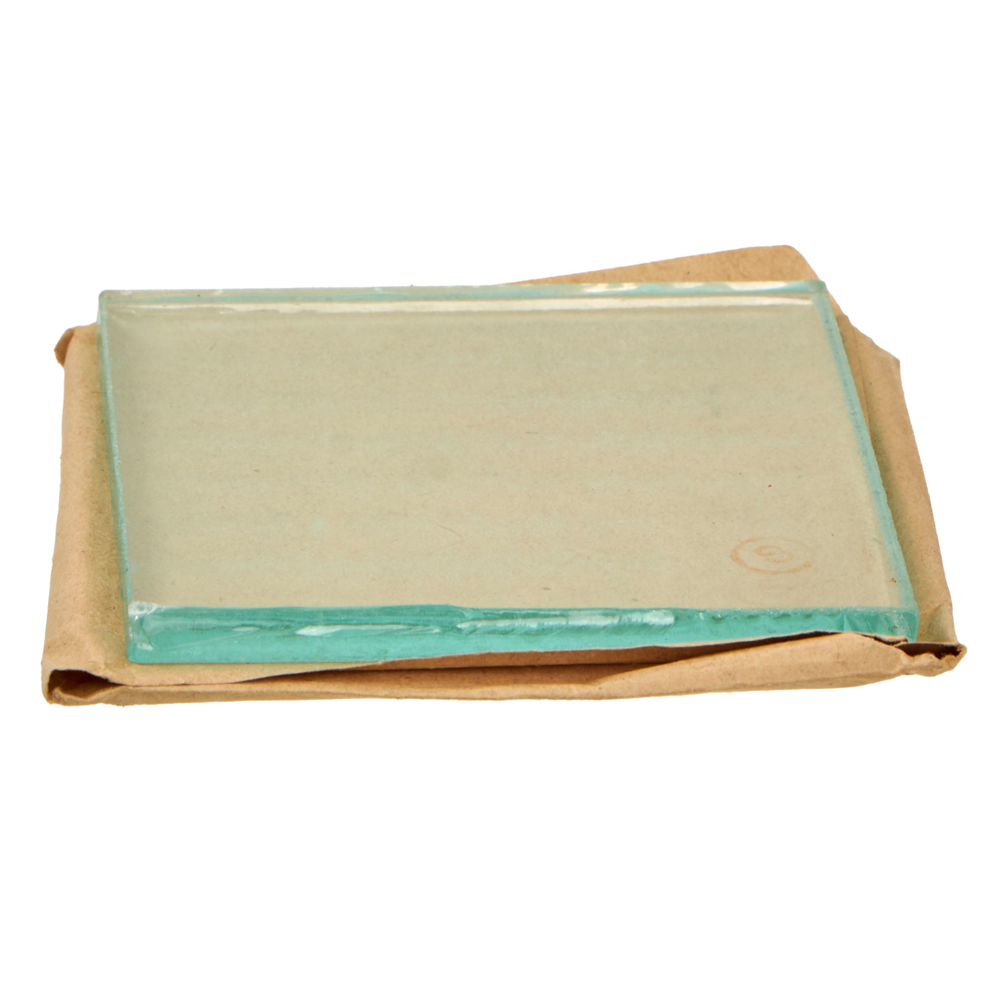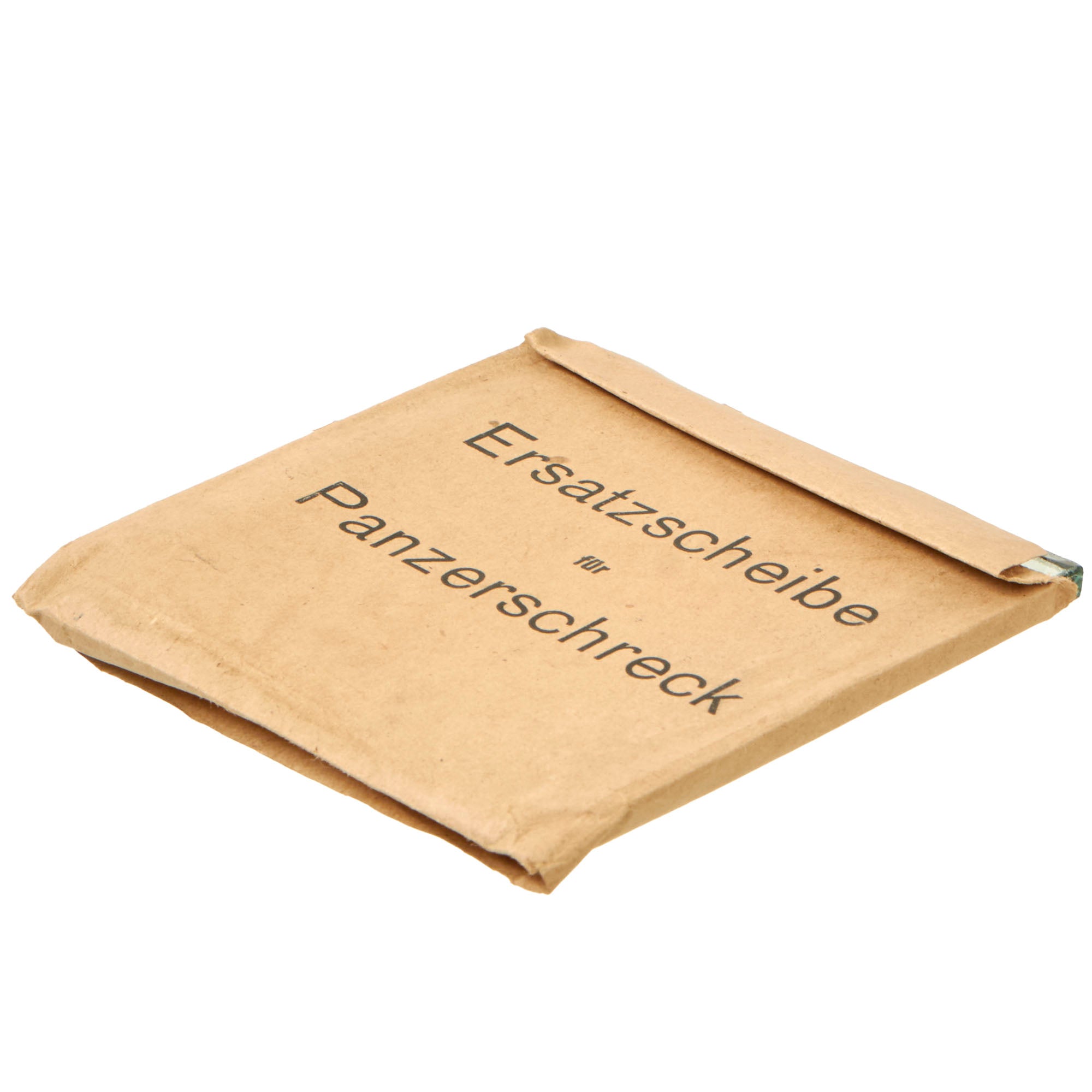 Original Items: Very Few Available. We have just acquired a very small number of these lovely unissued Ersatzscheibe für Panzerschreck (Replacement Lens for Panzerschreck) lenses, complete in their original wrapping. Each of these measures approximately 2 7/8" x 2 7/8", and most look to have a small inspection stamp on the glass itself. These replace the "lens" in the blast shield, which protects the users eye from the back blast of the rocket. The paper wrapping on each is correctly marked with: