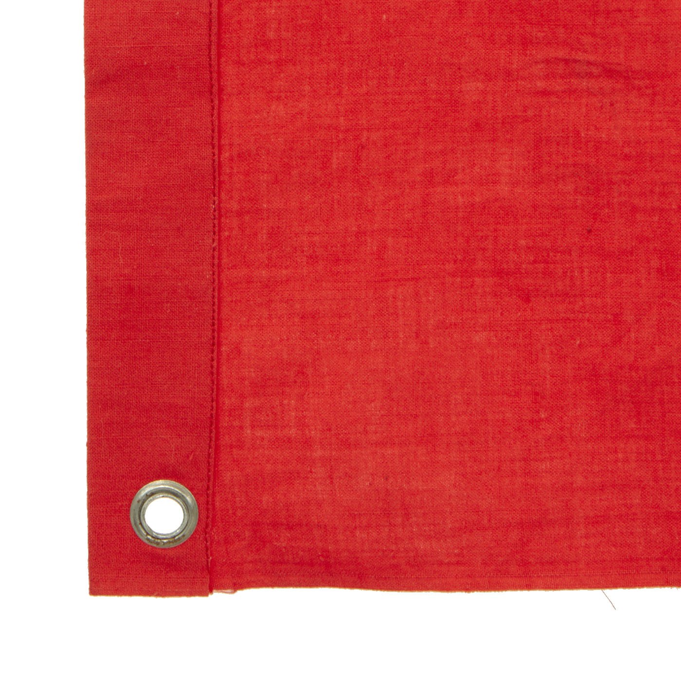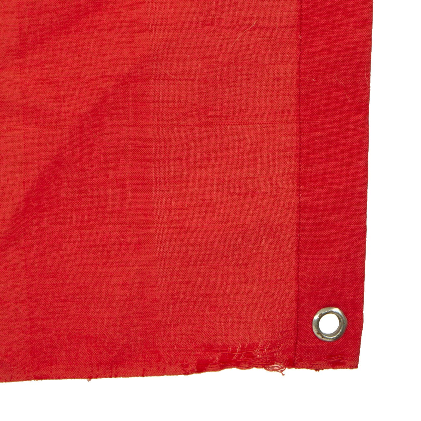 This cotton flag features multi-piece construction and is single sided with grommets located in each corner. These grommets were secured to tension lines that secured the flag to the back of the tank laying flat. Thereby the flag was only visible to persons located above the tank. Generally these flags were intended to be seen by German airplanes so as not to be struck by friendly fire.