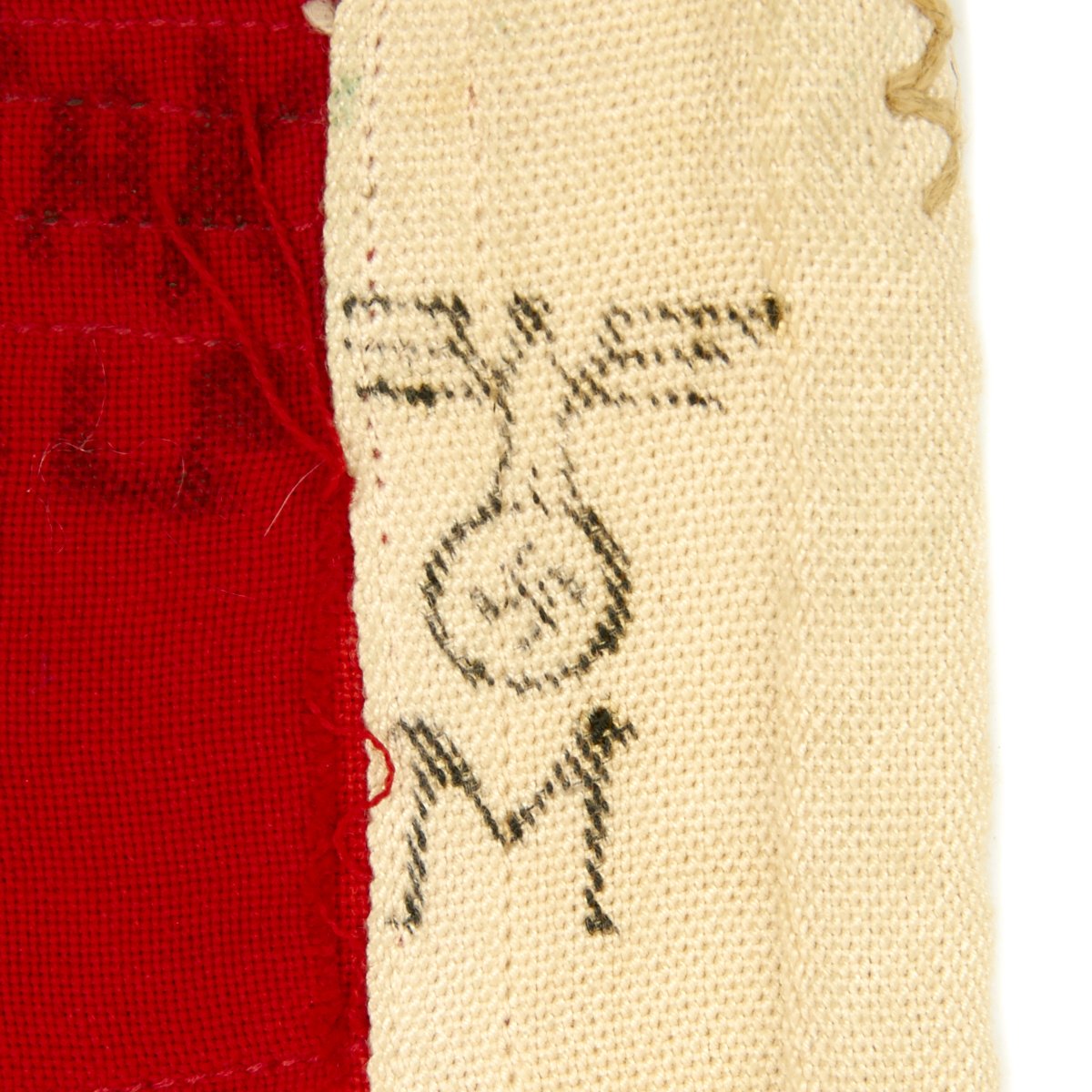 This flag is totally original and is in excellent condition only with no discernible damage anywhere. Nicely stamped with a Kreigsmarine Eagle / M and Gösch 80 x135, indicating that it is a Göschflagge, or "Jack Flag". This flag would be attached to the "Jack Staff", a small vertical spar (pole) on the bow of a ship or smaller vessel on which this particular type of flag, known as a jack, is flown. The jack is typically flown from military vessels, including submarines, while at anchor or moored pierside, but not while underway.