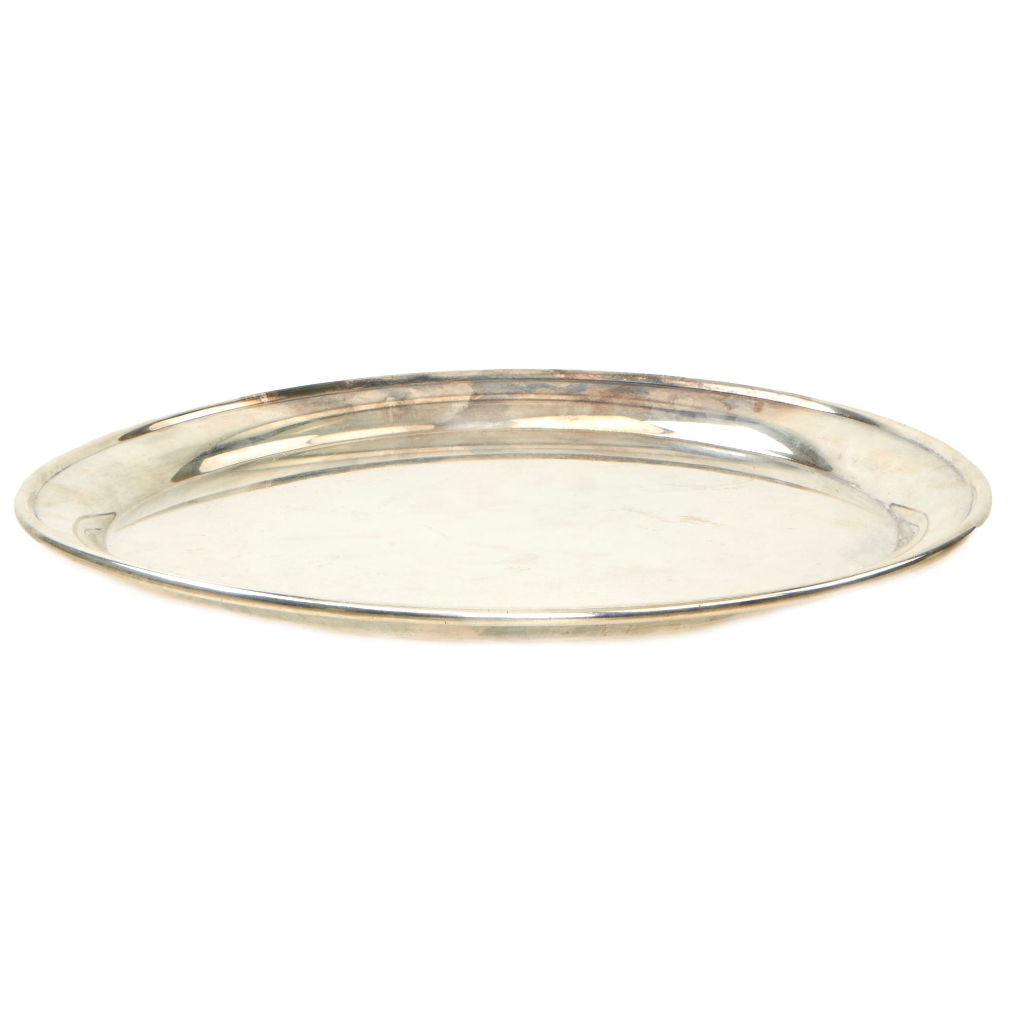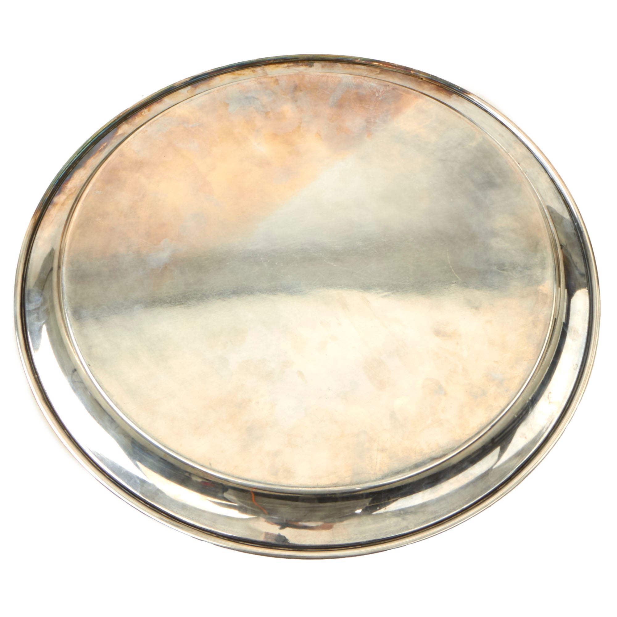 The tray weighs approximately 3lbs and is in fine condition, free of major dents, significant scratching or abrasion. The silver has not been recently cleaned and shows a pleasing degree of tarnish and patina in areas.