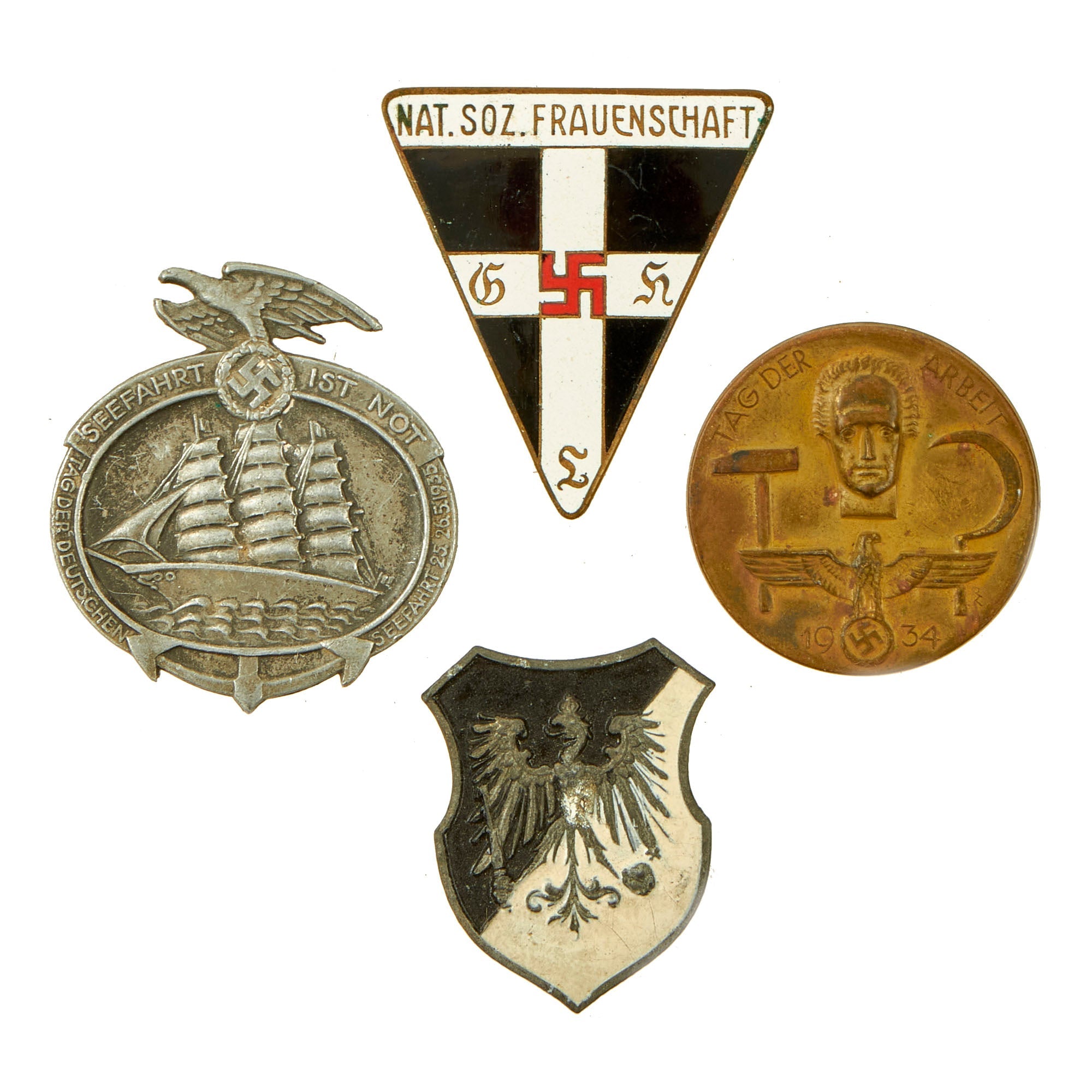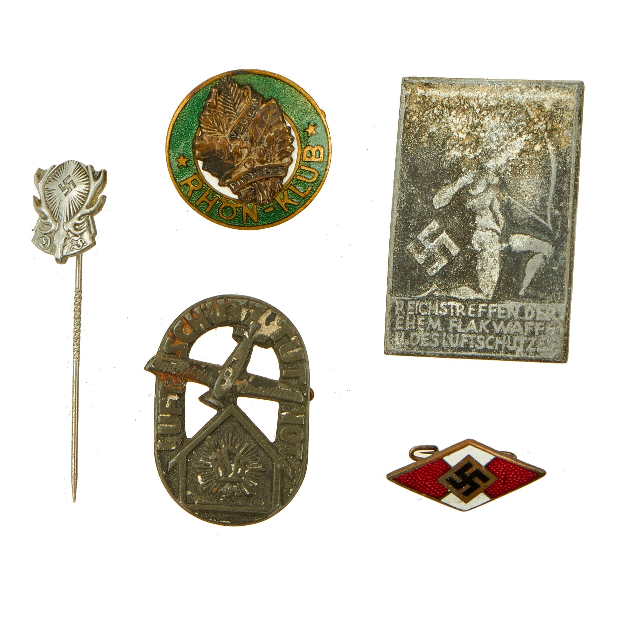 It includes a wide variety of items, including a rare "Liberation of Transylvania" Hungarian medal, "sanitized" Silver Grade Wound Badge, a Kriegsmarine Navy Blue / Yellow BeVo Breast Eagle, a 1st Pattern Frauenschaft Women’s Organization Badge, and a wide variety of event pins & tinnies. Please consult the pictures for further details.