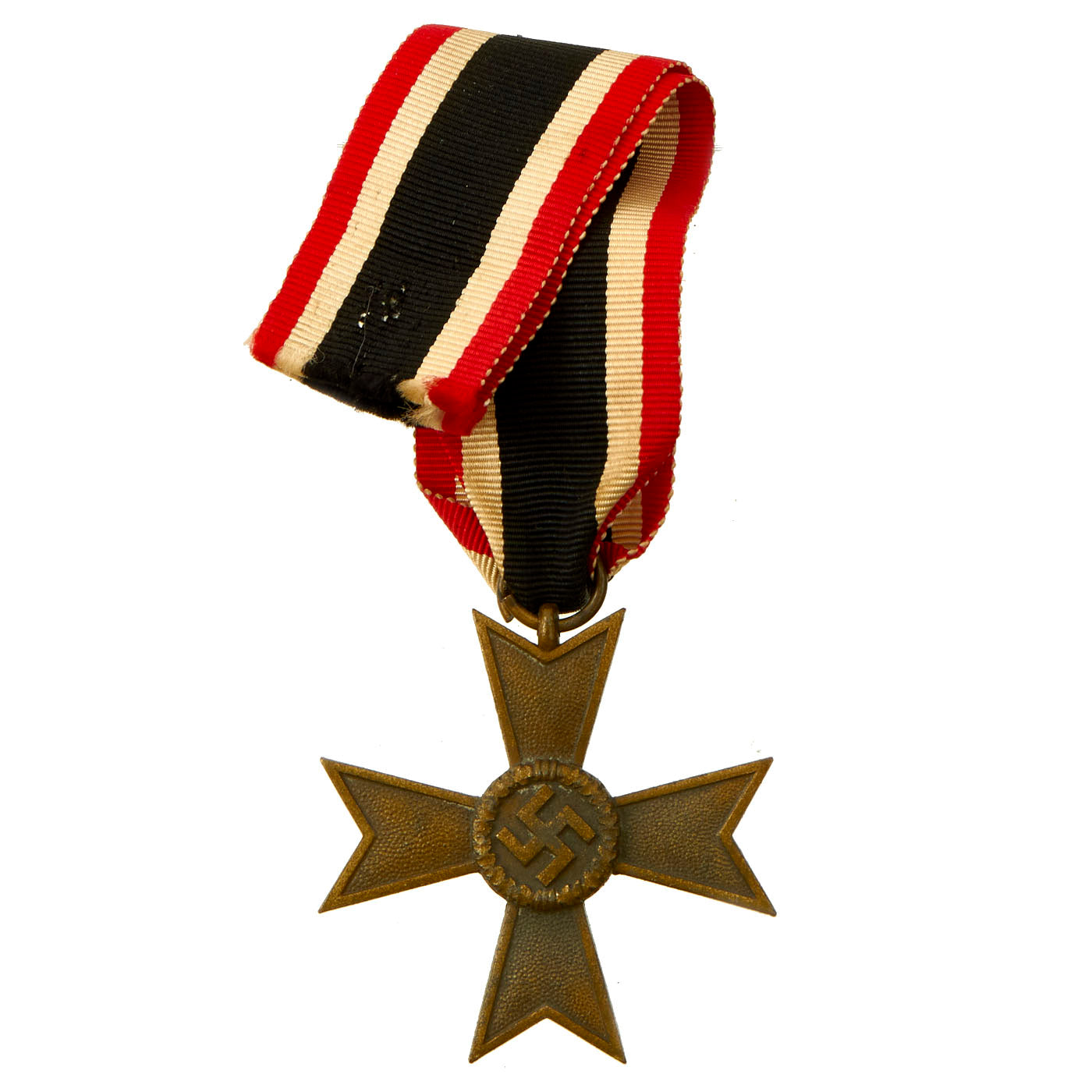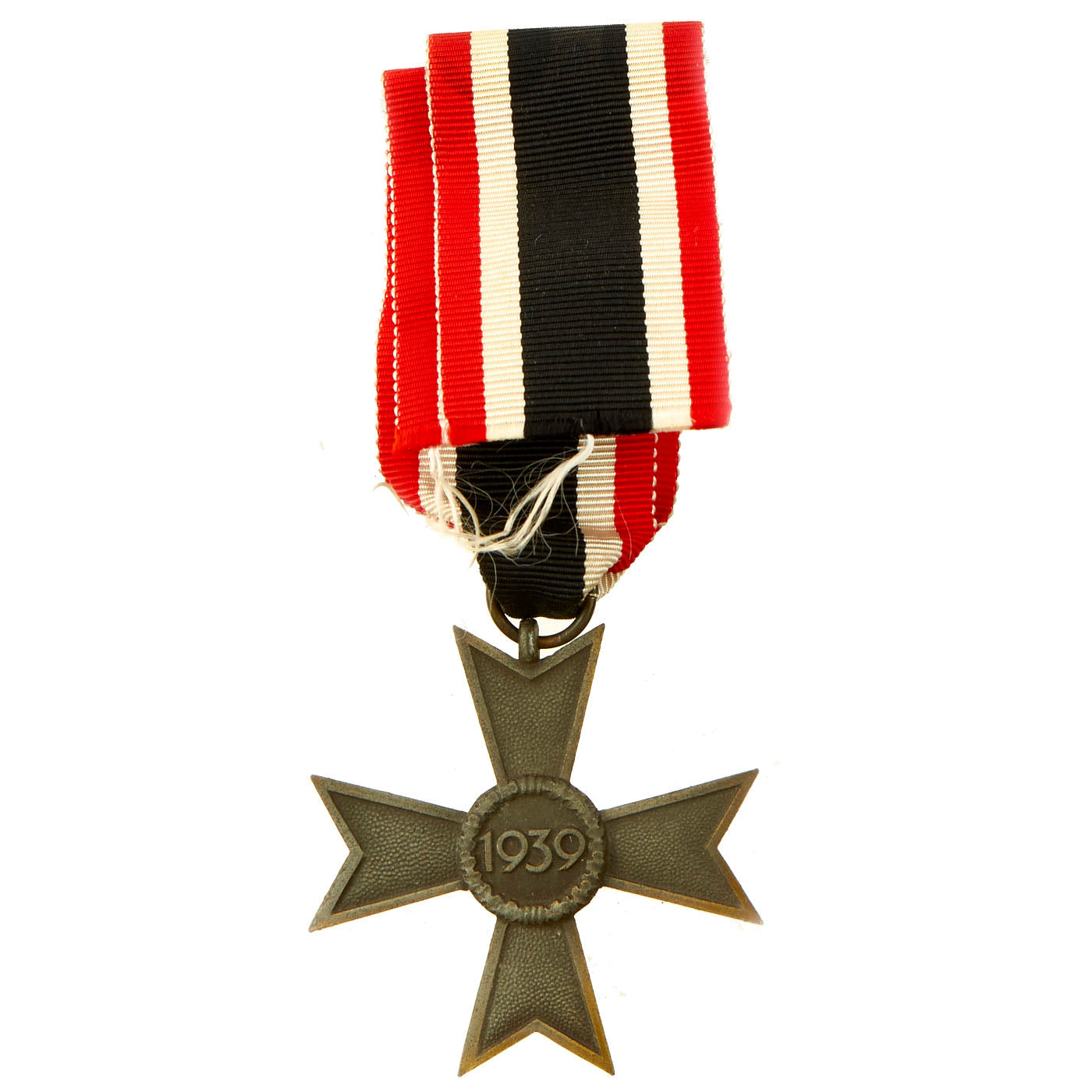 - TWO War Merit Cross 2nd Class (Kriegsverdienstkreuz II or KvK II) Awards with Ribbons. Both awards are in very good condition, with a nice patina on the metal cross. They are the version "without swords", so they were awarded for actions not directly connected with combat. This was a decoration of NSDAP Germany during the Second World War, which could be awarded to military personnel and civilians alike. By the end of the war it was issued in four degrees, and had a related civil decoration. It was created by Adolf AH in October 1939 as a successor to the non-combatant Iron Cross which was used in earlier wars.