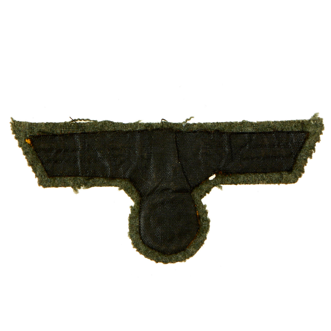 - German WWII Kriegsmarine Field Gray Uniform Embroidered Breast Eagle. This could be from a Küstenartillerie (Coastal Artillery) uniform, as they wore the field gray uniform as standard equipment, unlike the rest of the kriegsmarine. It is in good condition, showing staining and some mothing.