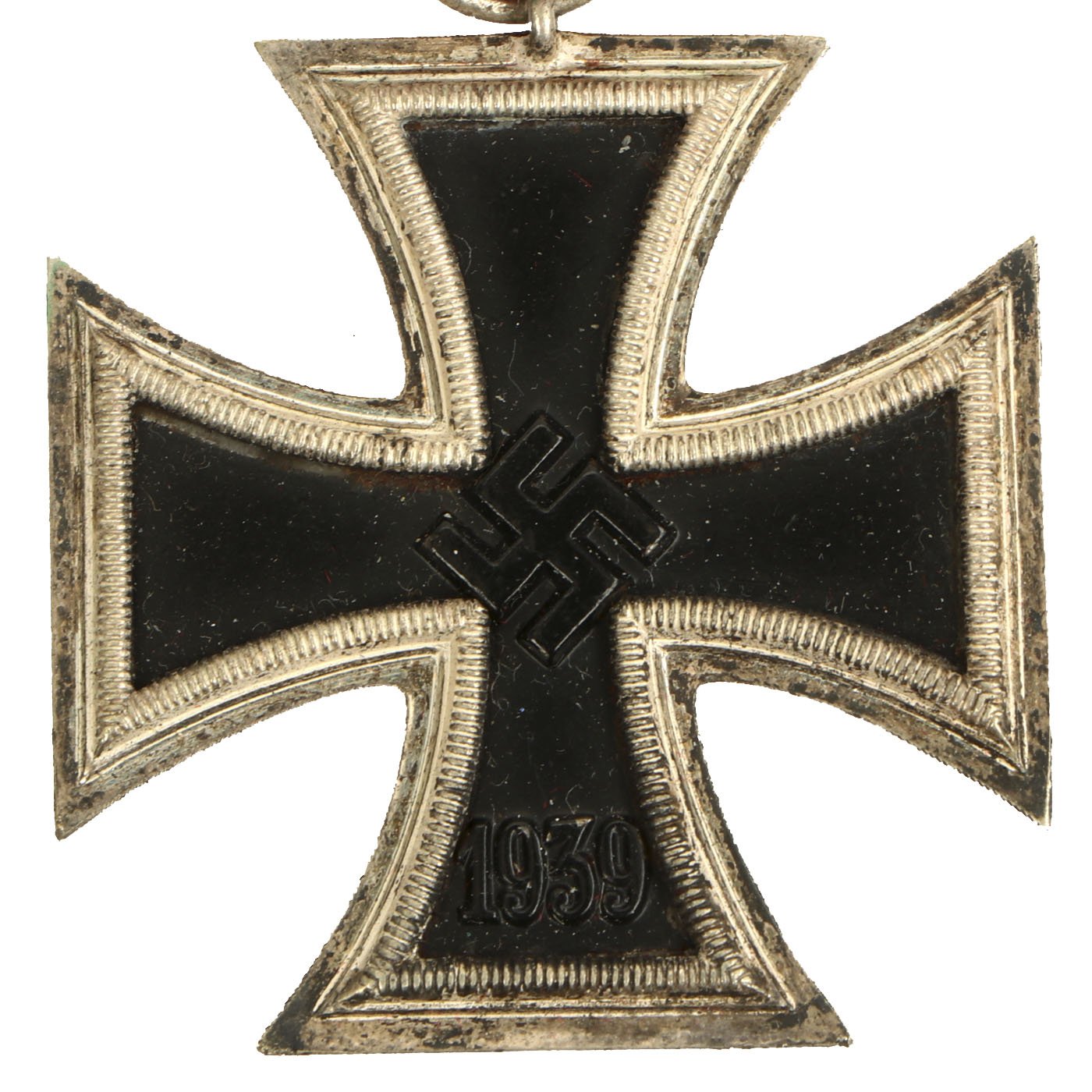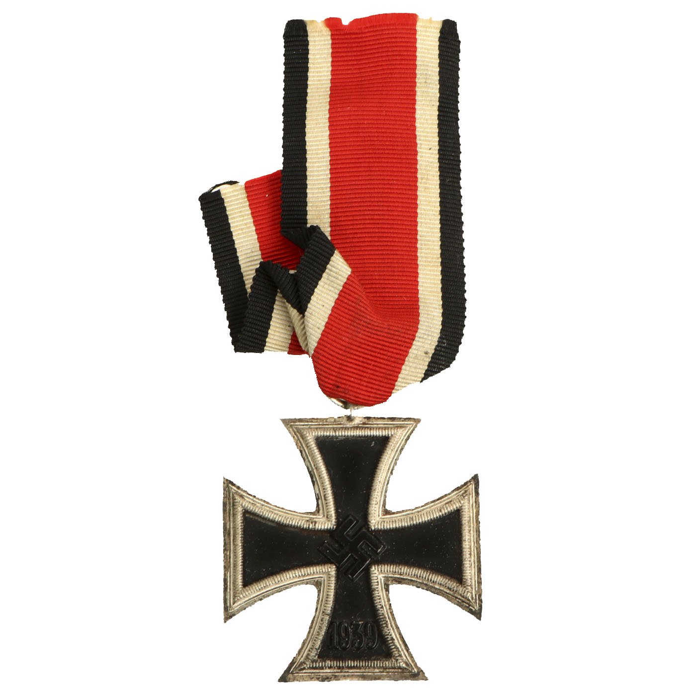 - One German WWII Iron Cross 2nd Class 1939 (Eisernes Kreuz II. Klasse 1939) with Ribbon. This fine example is in very good condition, and is maker marked 113 on the hanger ring, for Hermann Aurich of Dresden, Germany.