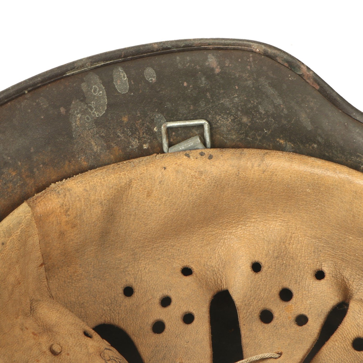 The chin strap unfortunately is completely missing, which often happens as they are the first thing to suffer dry rot.