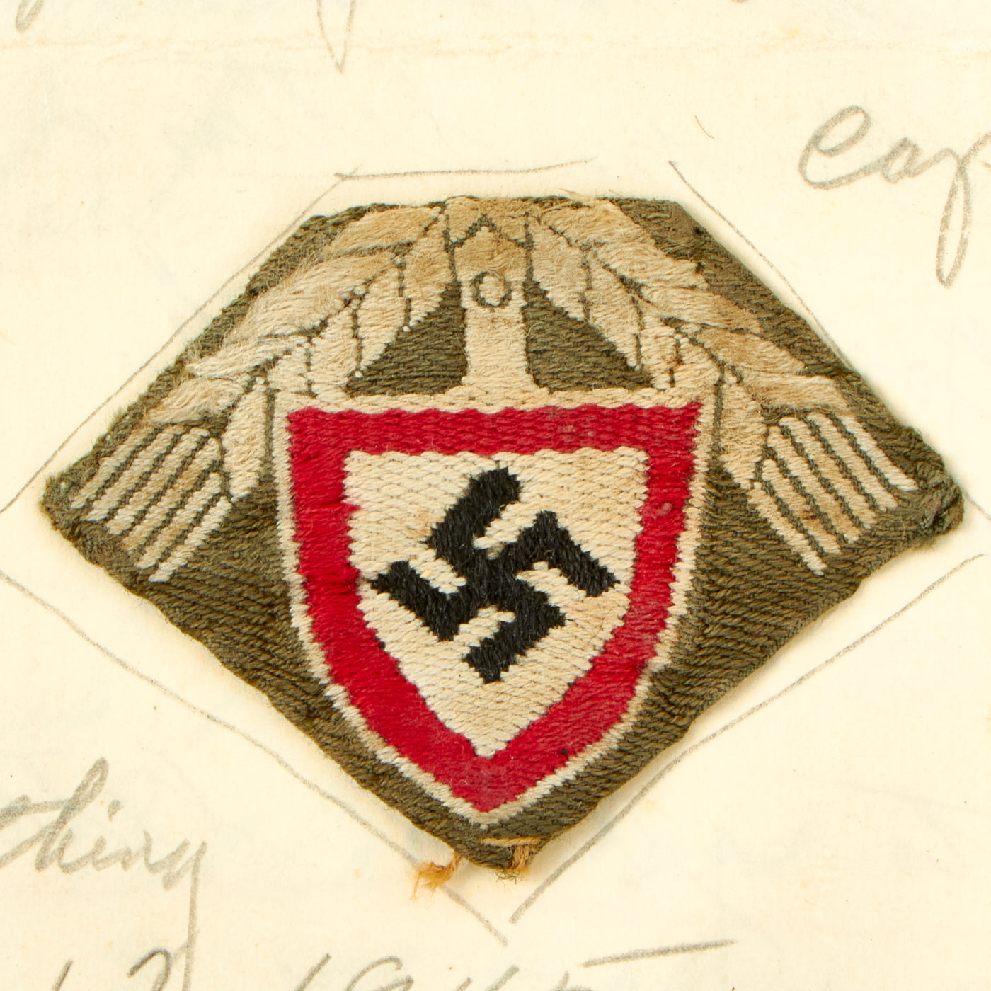 The lower insignia is an RAD Reich Labor Service cap insignia, with the caption: