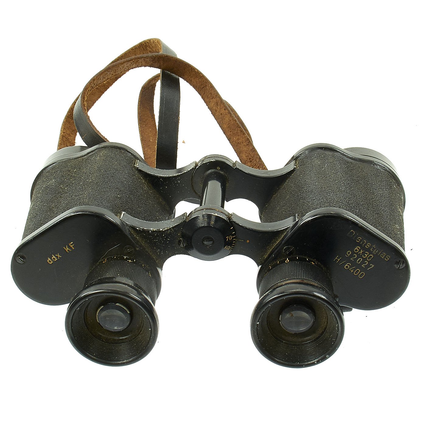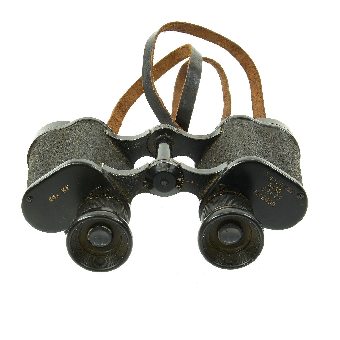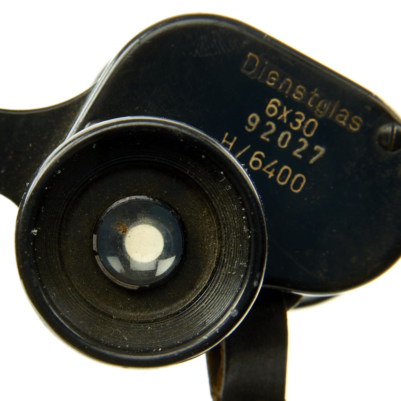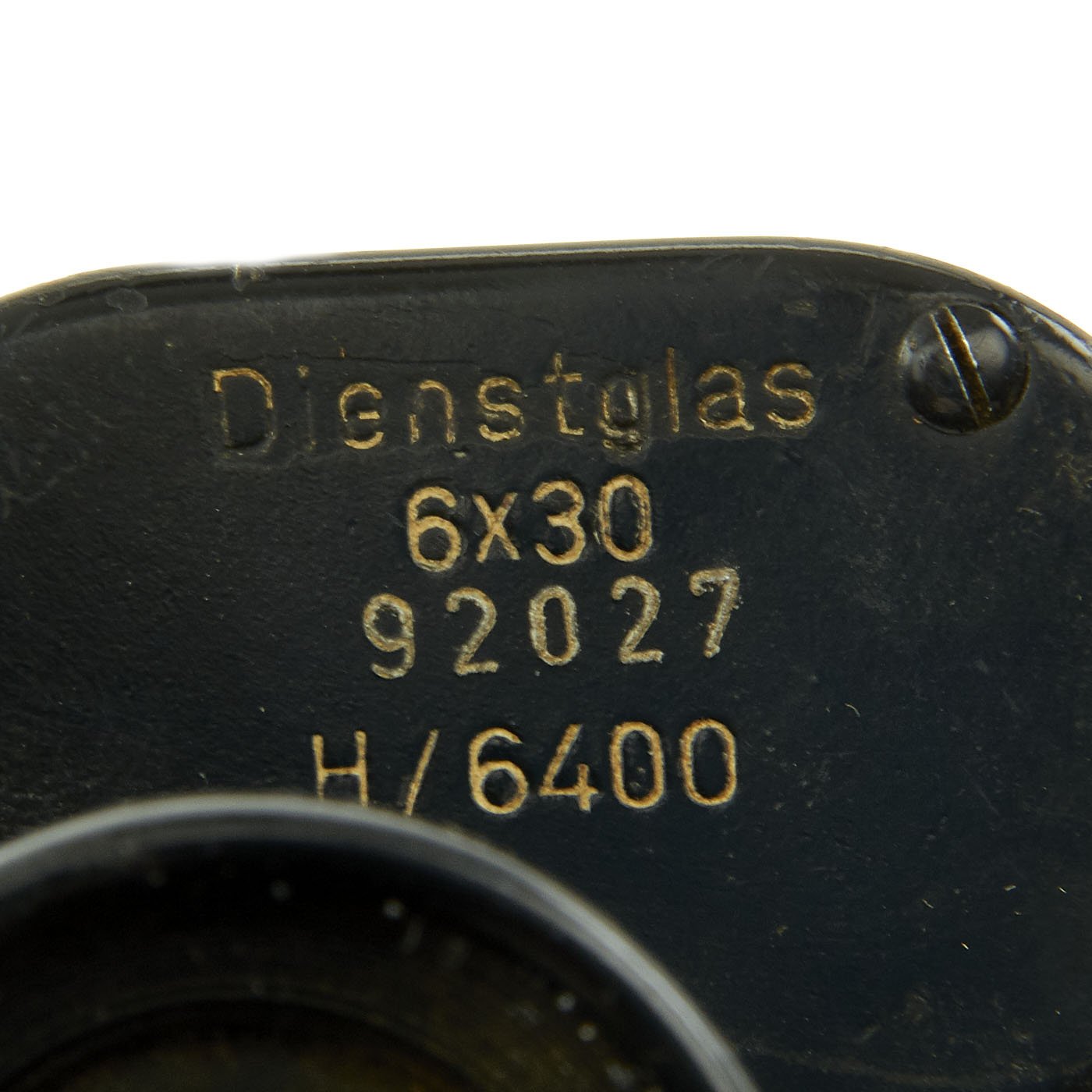 Original Item: Only One Available. The 6x30 Dienstglas was one of the most used German issued binoculars of WWII. This example is fully functional, with mostly clear optics, complete with a range reticle in the right side. It is nicely marked as follows on the base of the barrels: