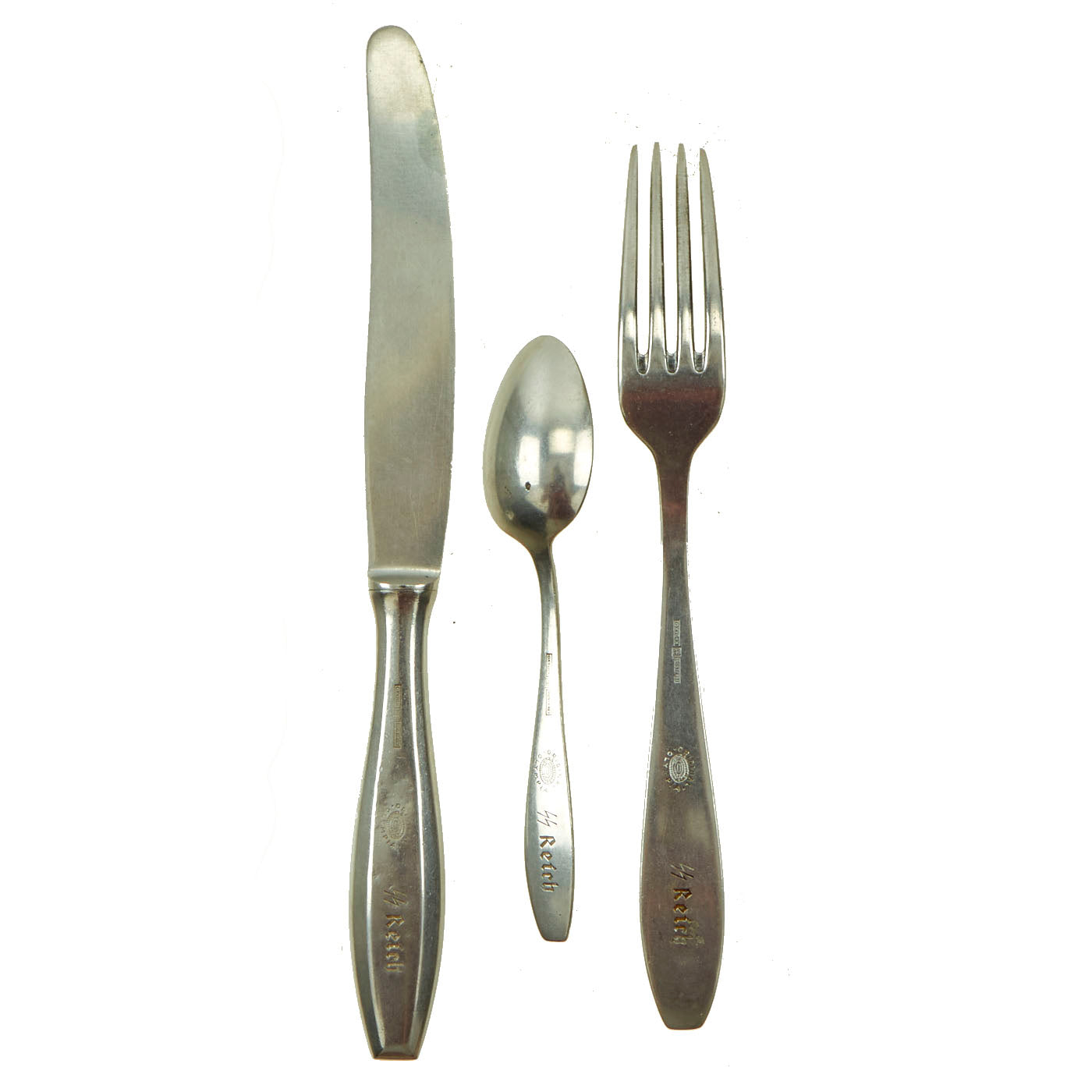 Original German WWII Waffen-SS Mess Hall Flatware Set by “Original Olympia” - Knife, Spoon & Fork