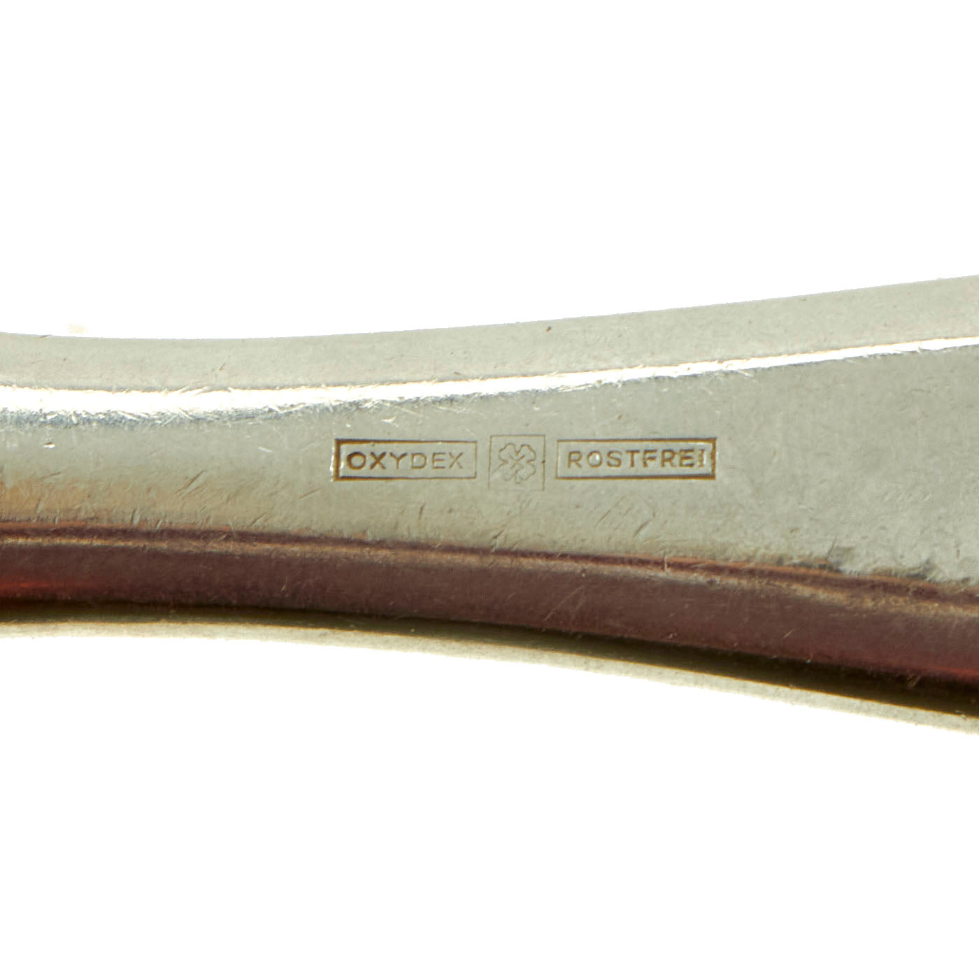 • Original Items: Only One Set Available. This is an exceptionally high quality stainless steel Waffen-SS Mess Hall flatware set manufactured by W. Seibel, Besteckfabrik (cutlery factory) in Mettmann, Rheinland, a known maker of German WWII cutlery. Their trademark "Four Leaf Clover" logo is on all three pieces, as well as OXYDEX ROSTFREI (Oxydex Rust-Free). The blade of the knife is made from a separate piece, and has an additional clover trademark logo over ROSTRFREI.