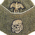 This example is constructed of a field gray (feldgrau) wool exterior, with a dark gray cotton lining. It features a fine machine embroidered eagle, with white thread on a black base, the standard SS colors. In the front center is the SS Totenkopf (Death's Head or Skull) badge, also machine embroidered with white thread on a black background. It should be noted that both the SS eagle and Totenkopf insignia match both in construction, and in the method in which they were applied.