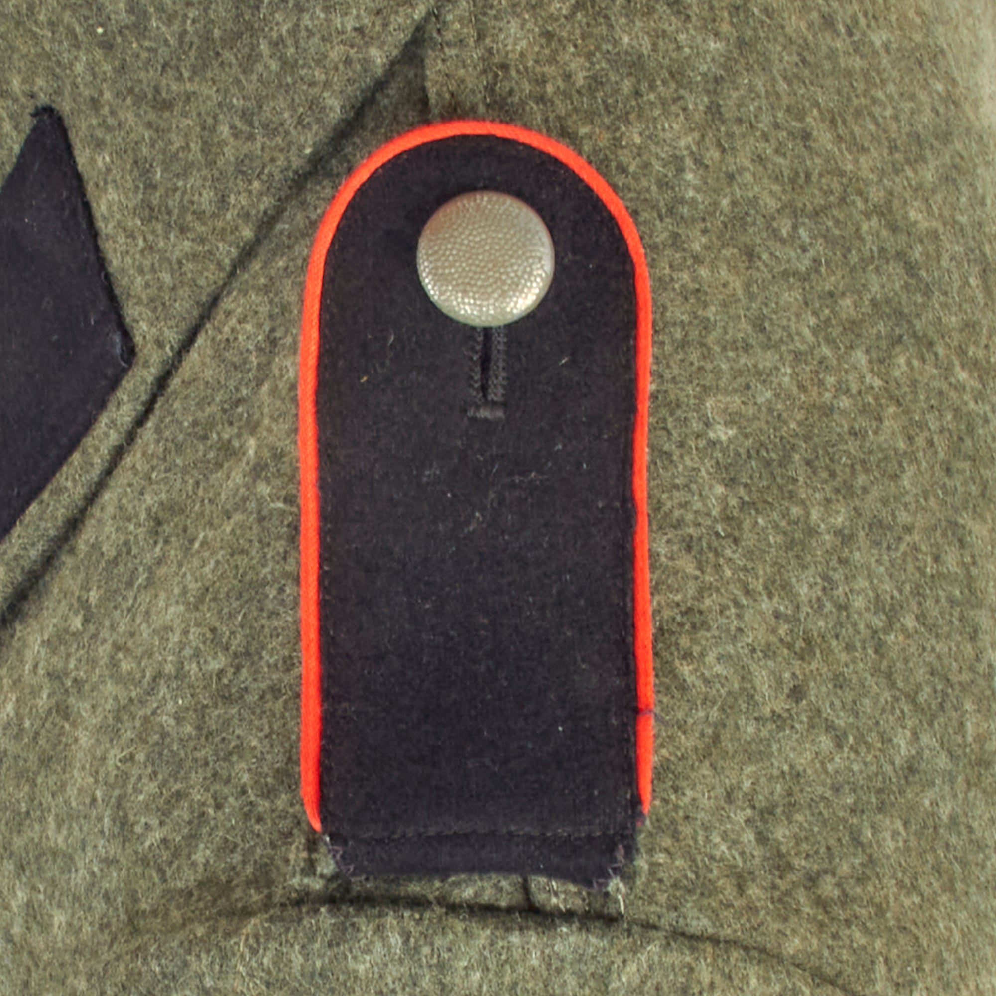 The uniform itself appears to bear a SS manufacturing code “43” above the size stamps marked inside the interior. The two-digit numerical code denotes a sub-plant which manufactured the items that were often located in the vicinity of Dachau. These two digit codes are often found in many Dachau-made items, from Camouflage smocks to headgear, helmet covers to tunics. Unfortunately, a concise list illustrating the location of these sub plants is unknown, however the codes are an indicative feature of Dachau-made items.