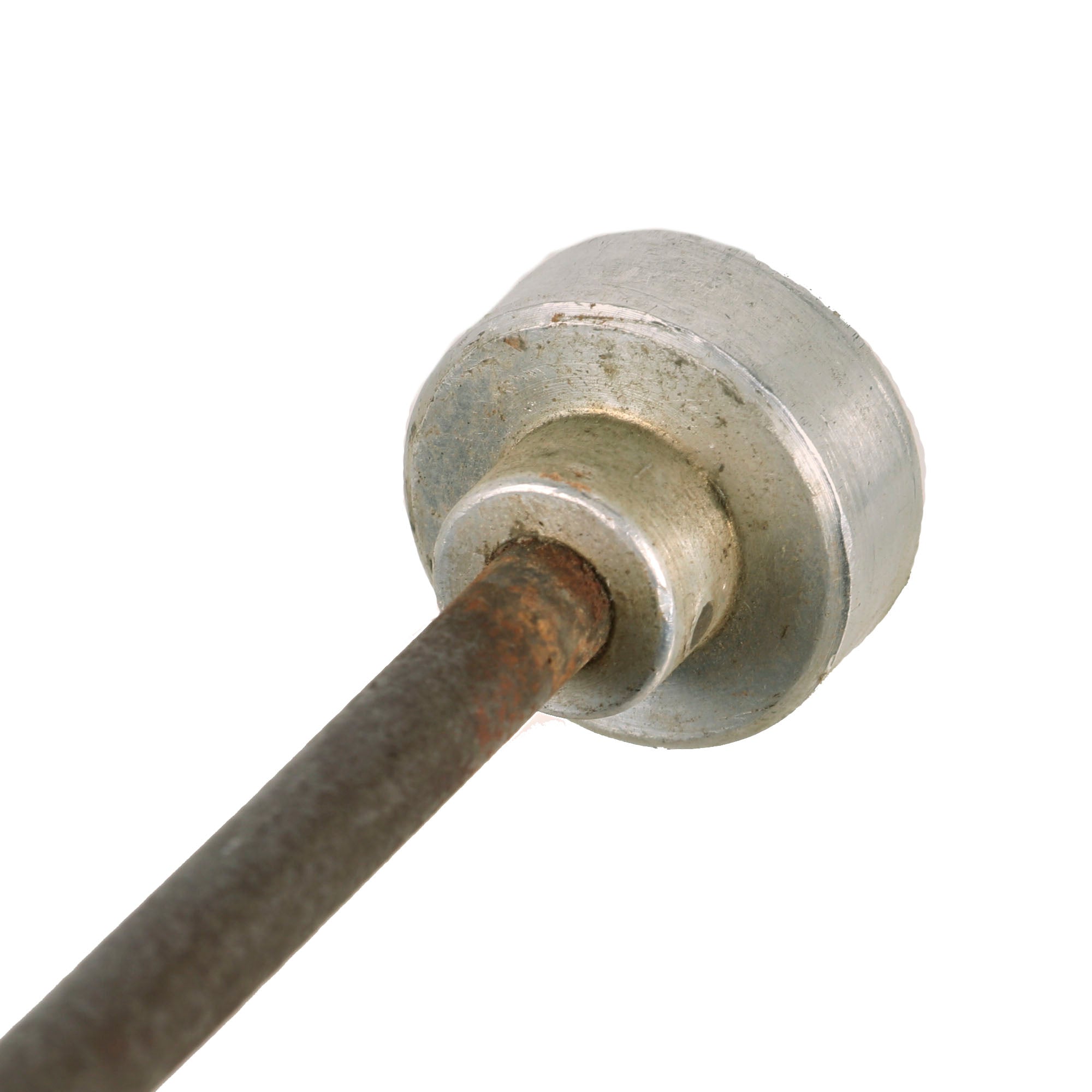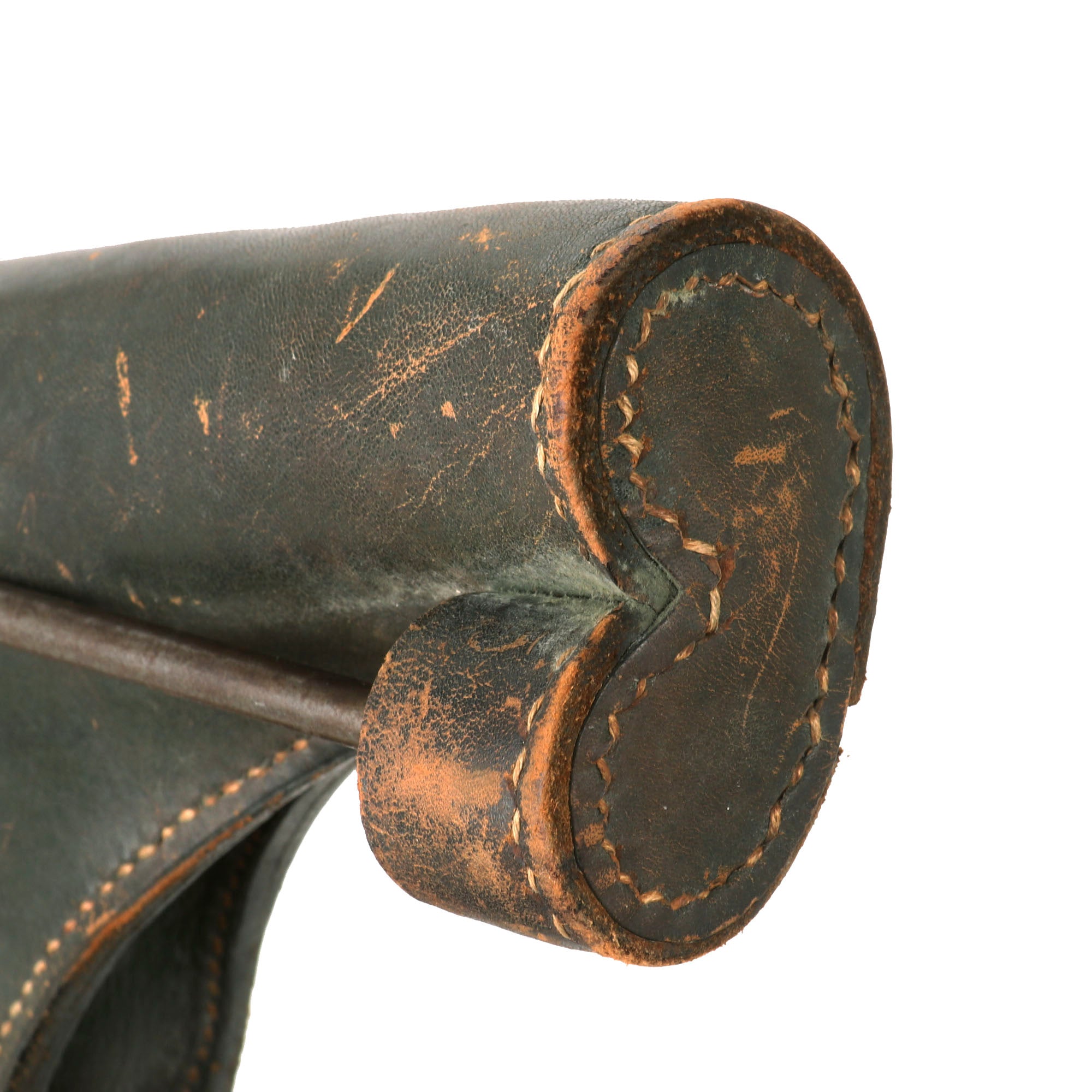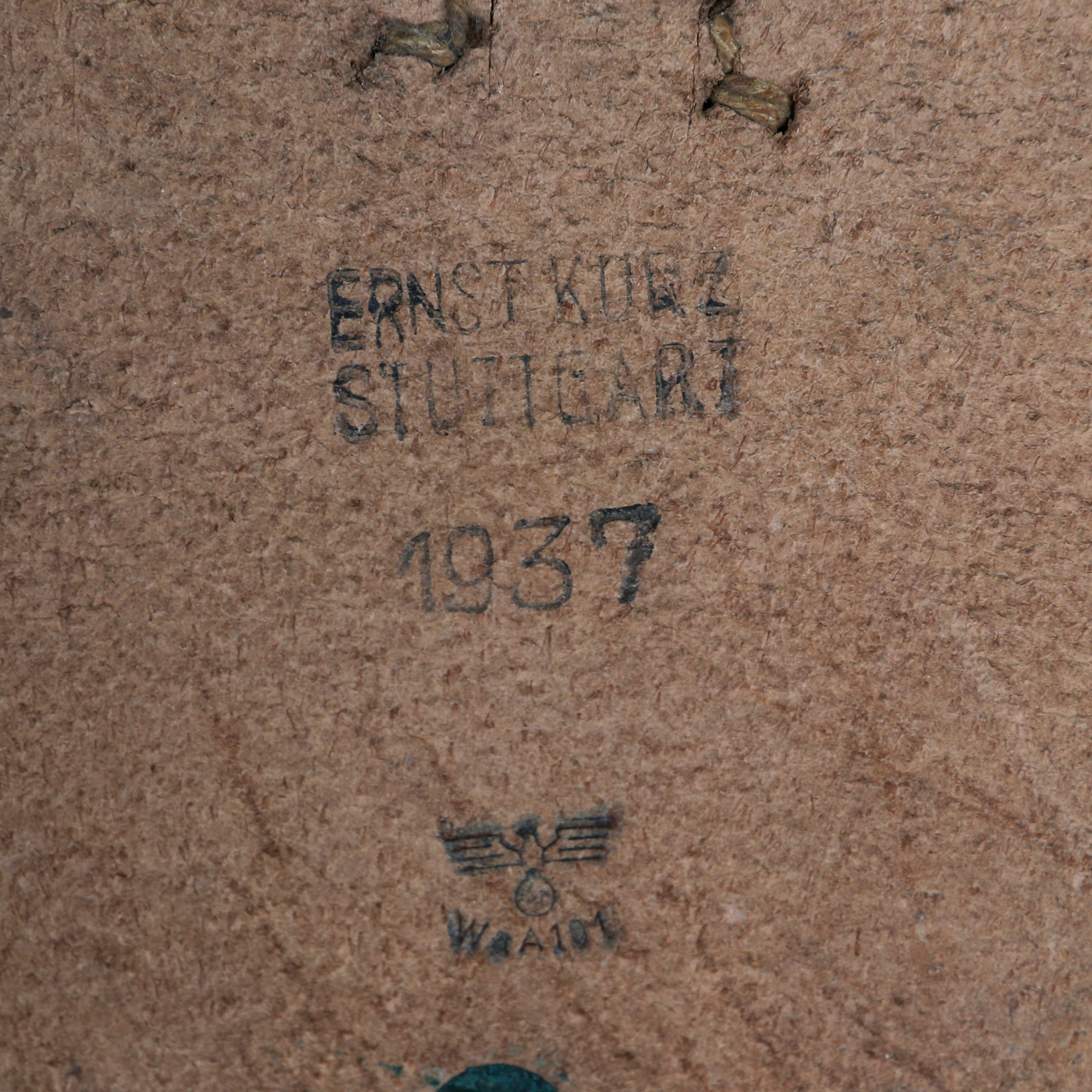 The included cleaning rod has a steel handle, and aluminum end rammer. It has an early "stick eagle" Waffenamt WaA300 stamped into the top of the handle, and it is also marked (G.L.) 38 on the other side, probably a maker marking and date. It also has a spring clip attached to the handle with a small leather strap, something we rarely see, that enables the cleaning rod to be attached elsewhere if needed.