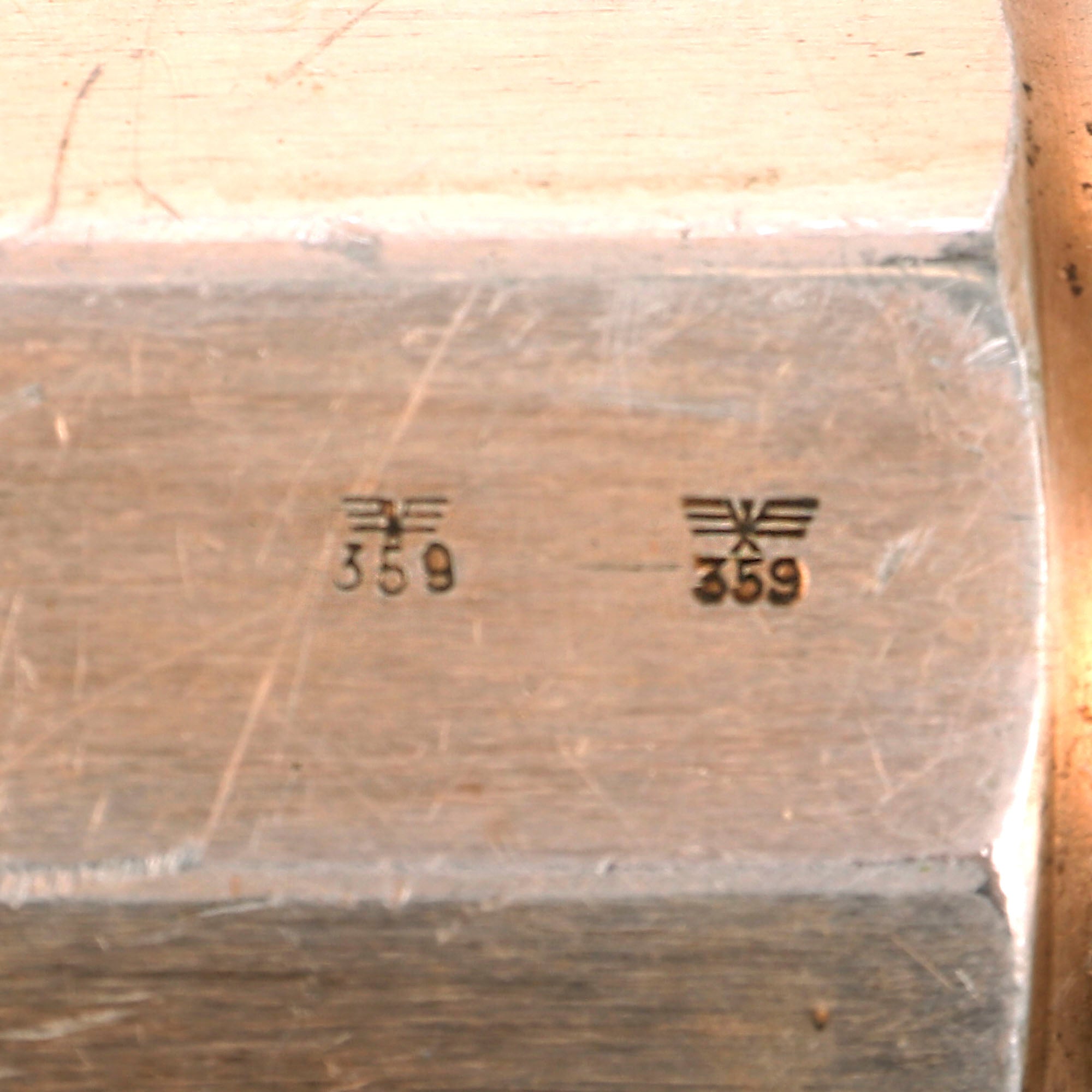 The pistol has matching serial number 3718 / d above the trigger guard and on the barrel just by the hinge. It is nicely Waffenamt marked on the right side of the frame and barrel, with inspector number 359, along with various other inspection and proof marks. These are the very early pre-war markings, and include the letters B, S, and U under crowns, as well as 4 in a circle for "4 bore" size 26.72mm, and a "spoked wheel". The "B" stands for Beschuss = proof load fired.