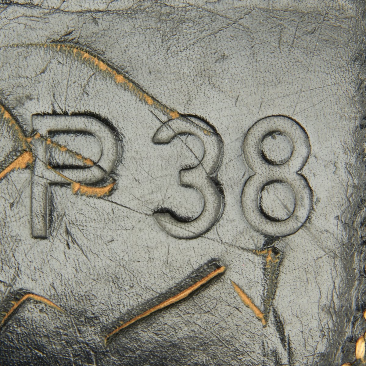 The Walther Pistole 38 (P.38) pistol was first introduced in 1938 as a replacement for the P.08. The P.38 was a more cost-efficient and more reliable in war conditions such as mud and rain. The P.08 was a typical prewar German gun, over engineered to perfection, with a sensitive toggle breech system that would malfunction when dirt was involved. The P.38 was a workhorse that did just what it was meant to do. It could handle most harsh battlefield conditions and as such the closed hardshell holster was discontinued later in the war and replaced for a partially open softshell holster. During the War close around 900,000 were produced, so the holsters were also produced in large quantities.