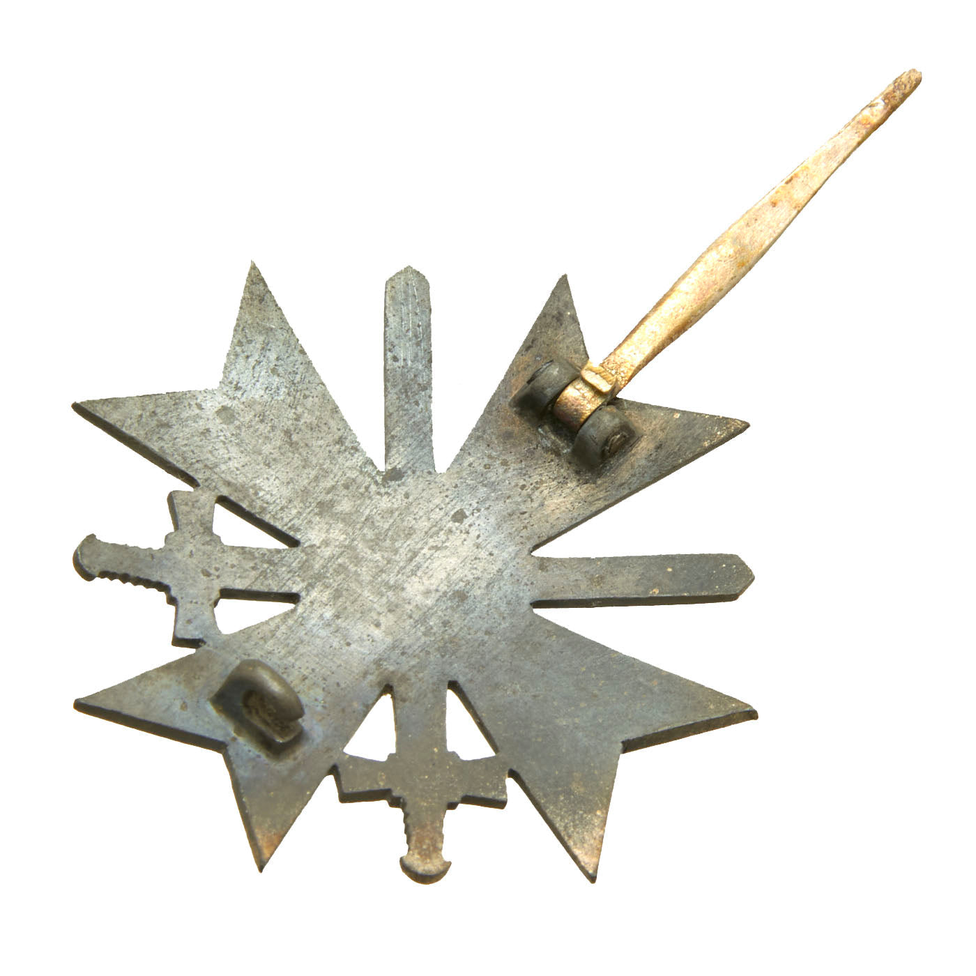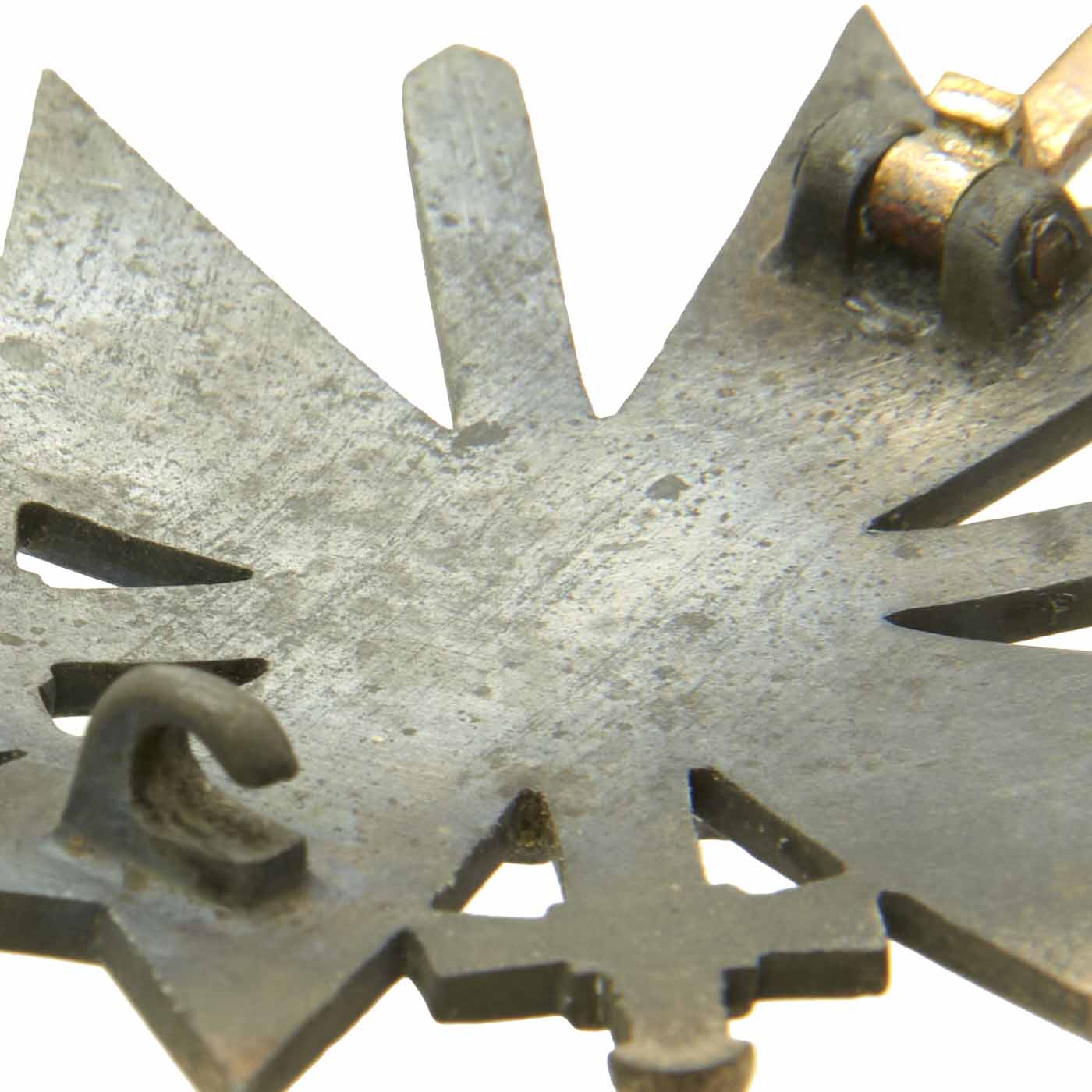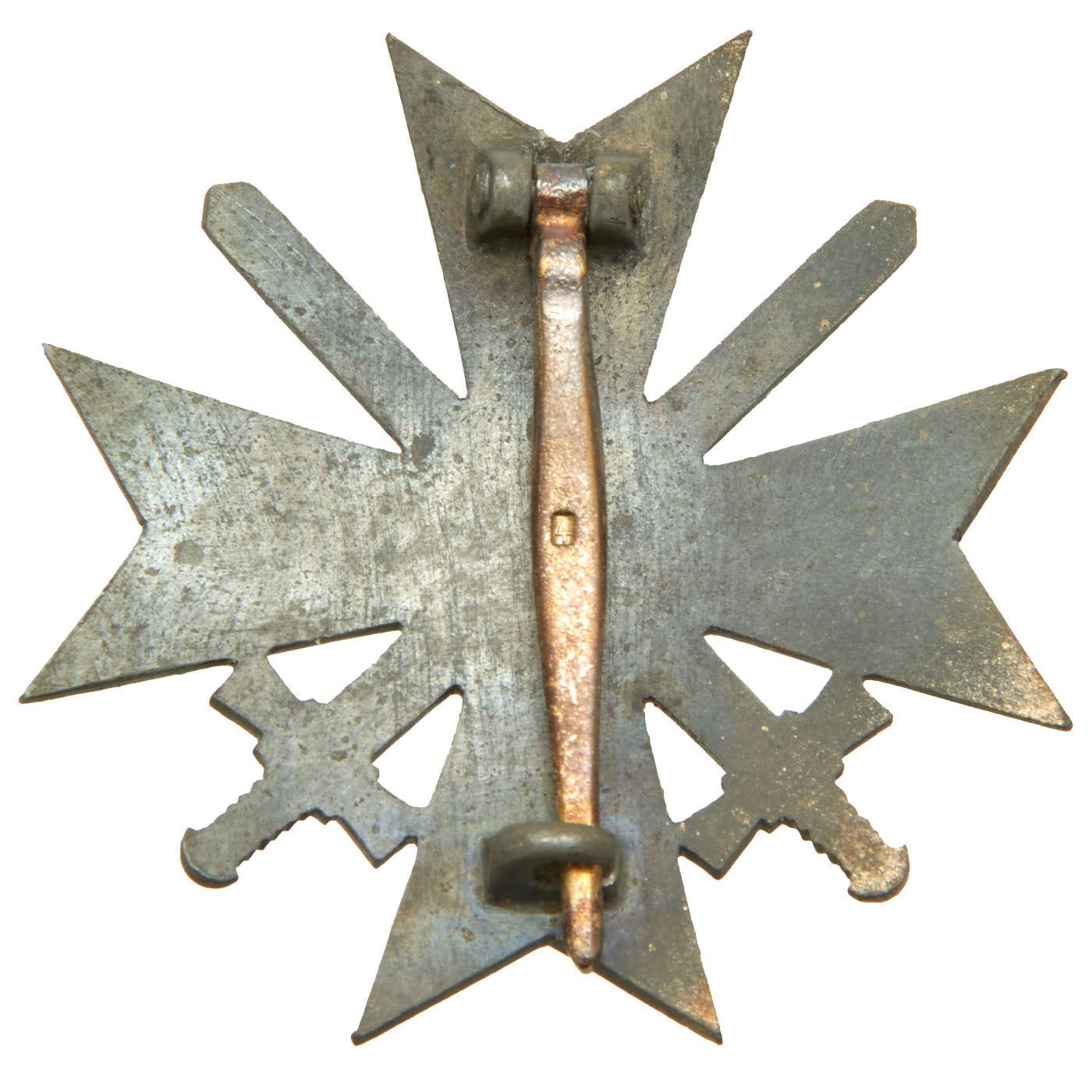 Pin back and maker stamped as issued with Präsidialkanzlei des Führers Lieferant (Presidential Chancellery Supplier) number 4 on the top of the pin, which represents Steinhauer & Lück of Lüdenscheid. It has a steel pin on the back, with cast hinge and pin catch.