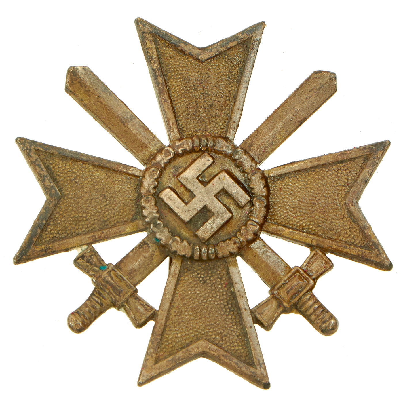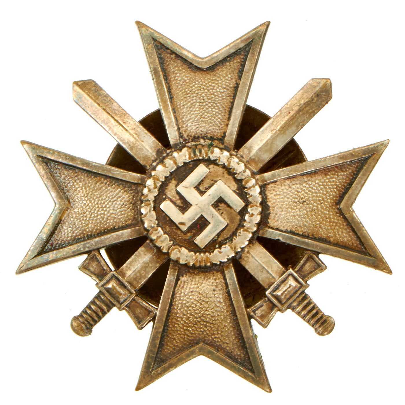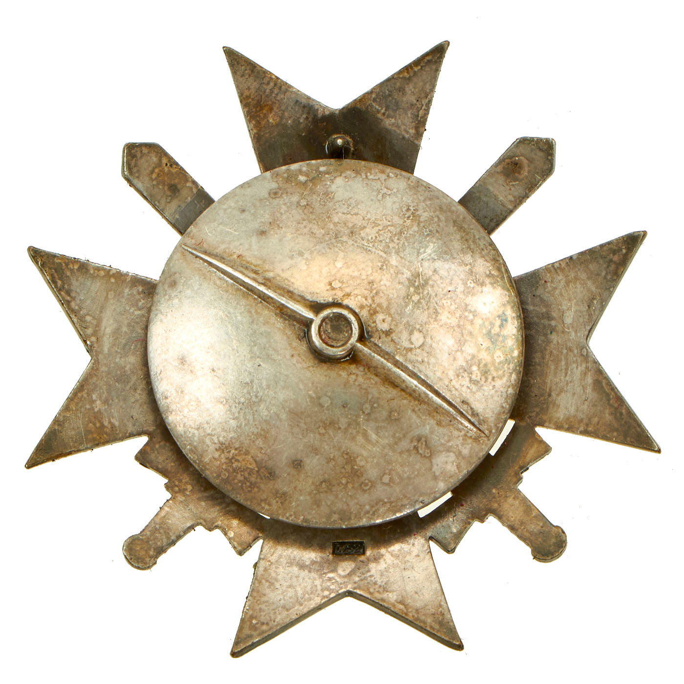 - KvK 1st Class: This is a lovely example of the KvK 1st Class without swords. It is maker marked on the pin arm, but was not aligned properly during the process and is incomplete. The silver wash is retained nicely.