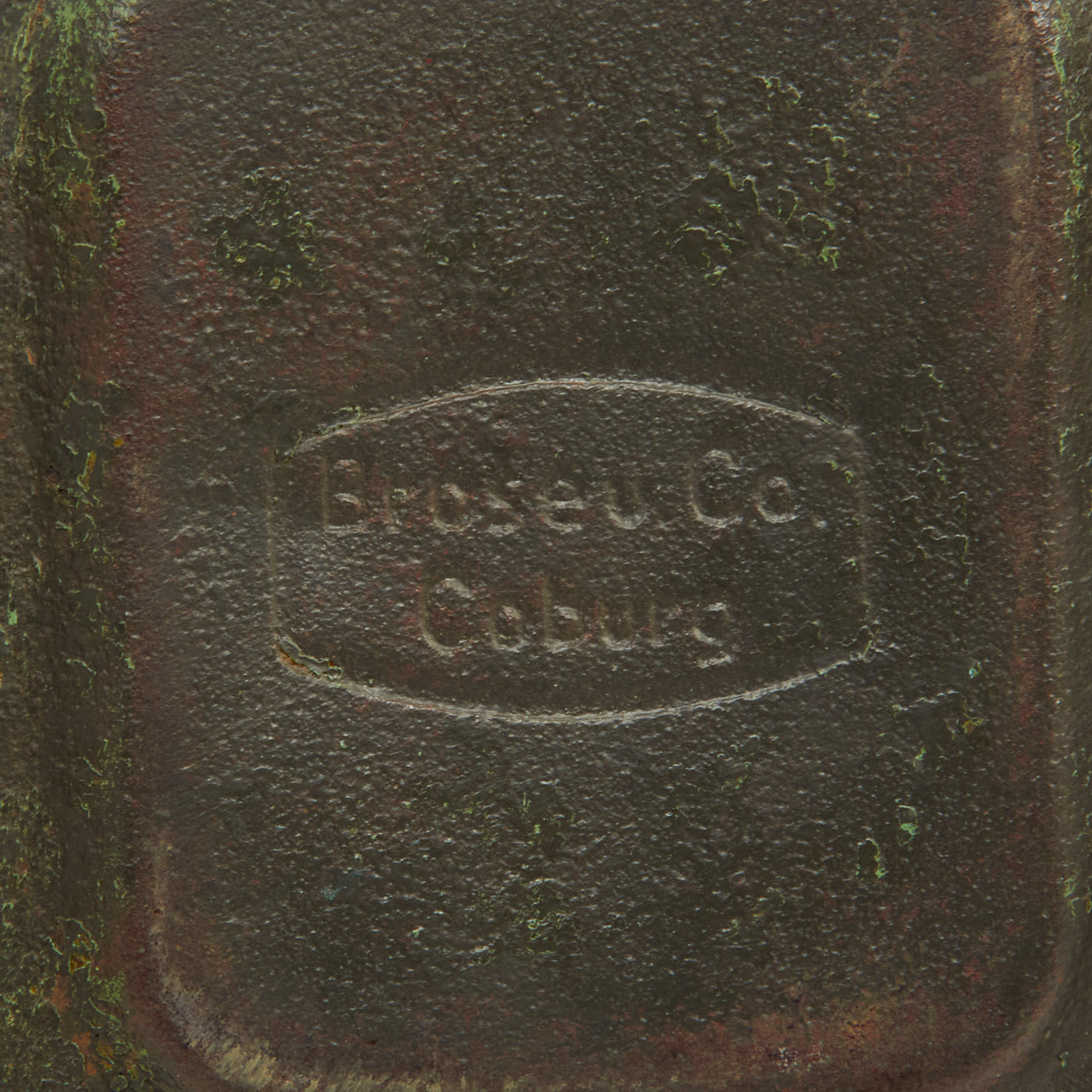 This translates to "fuel 20 liters - flammable", and maker marking is for Brose & Company of Coburg, Germany, a company that looks to still be in existence. Many period examples by this maker have been seen.