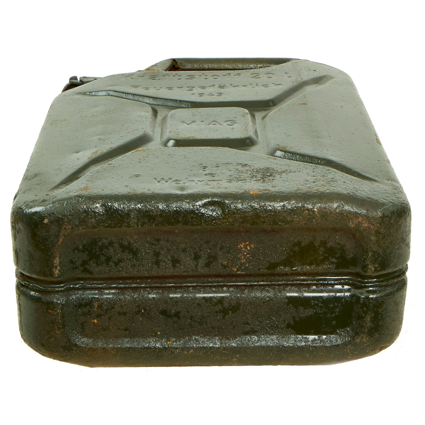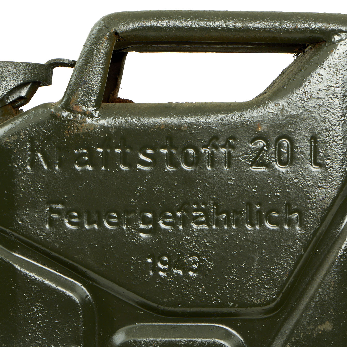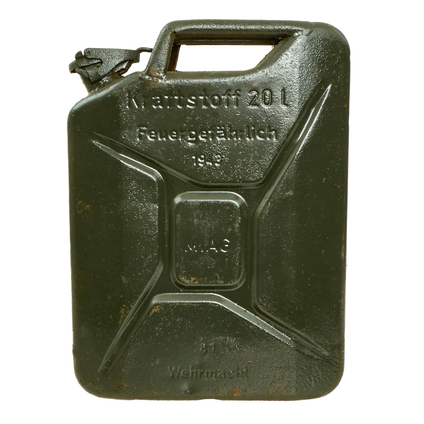 A very hard to find original Jerry can in functional condition with great German WWII markings! Ready to display!
