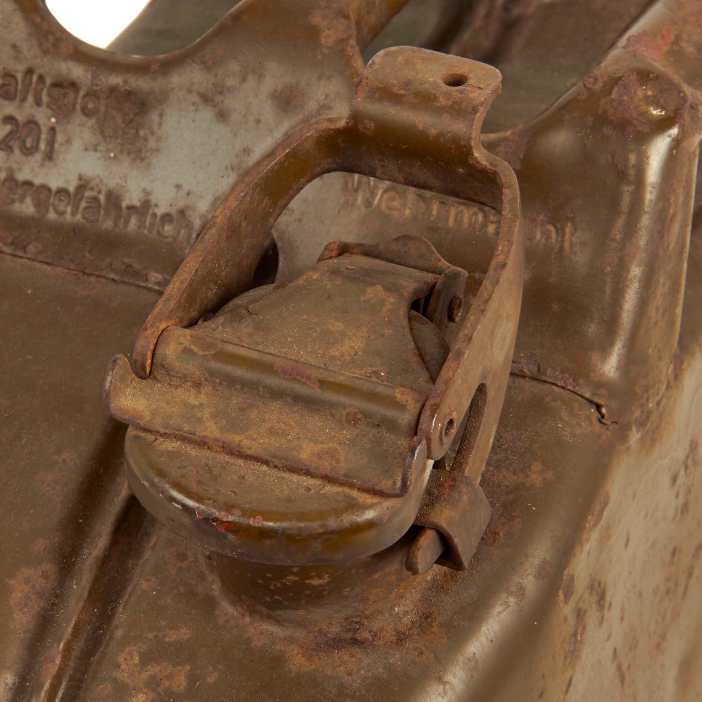 A very hard to find original Jerry can in functional condition with great German WWII markings! Ready to display!