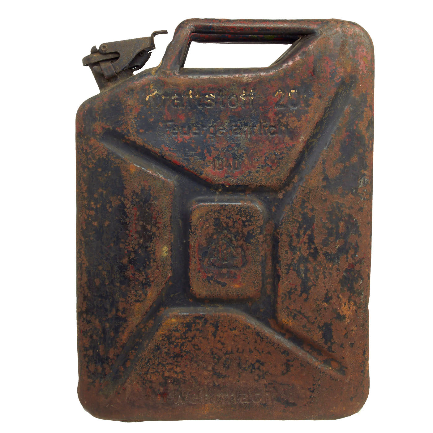 By 1939 the German military had thousands of such cans stockpiled in anticipation of war. Motorized troops were issued the cans with lengths of rubber hose in order to siphon fuel from any available source, a way to aid their rapid advance through Poland at the start of the Second World War.