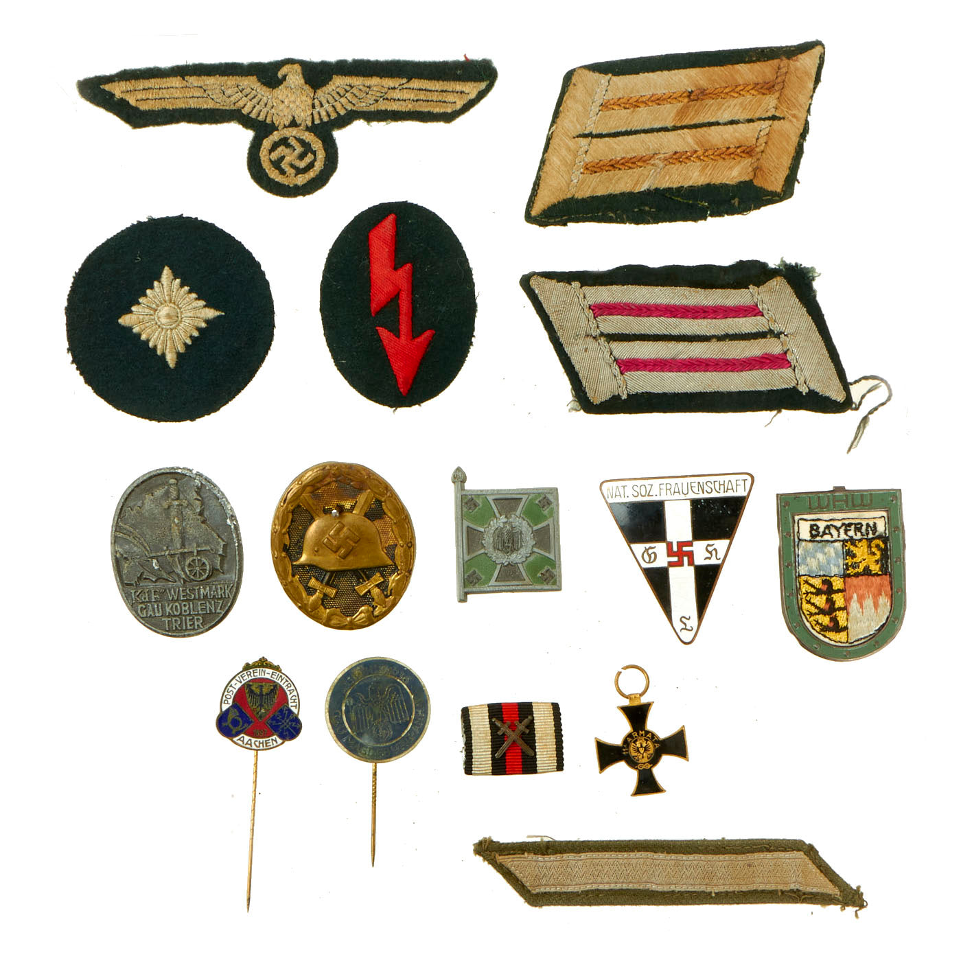 Original Items: Only One Lot of 15 Available. This is a wonderful lot of items which were more than likely brought home by American soldiers at the end WWII. They are in lovely condition and are perfect for the young collector who is looking to add a variety of medals and insignia to bolster their collections!