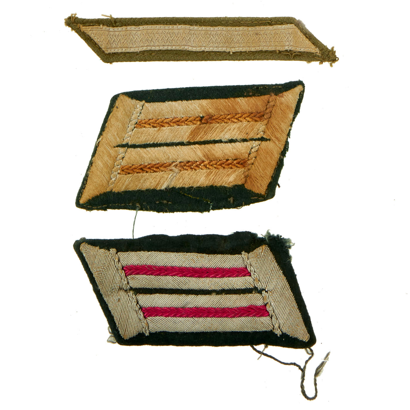 - x2 Litzen Collar Tabs and 1 Stripe: The litzen are in good condition but stained and faded. They are for Armored Corps and Signals.
