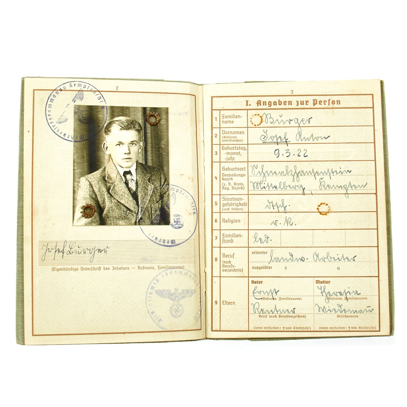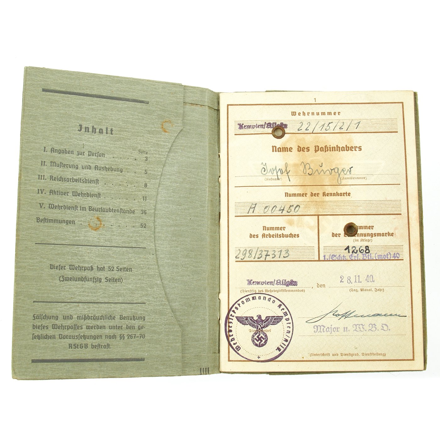 His brother Joseph Burger is named in a nice citation to their father, Ernst Burger, confirming his son's death and returning his Wehrpass (also included) showing his unit as 7./Jager Regt.207 and a killed-in-action date of December 8th, 1943 (12.8.43) at Mekerstuk.