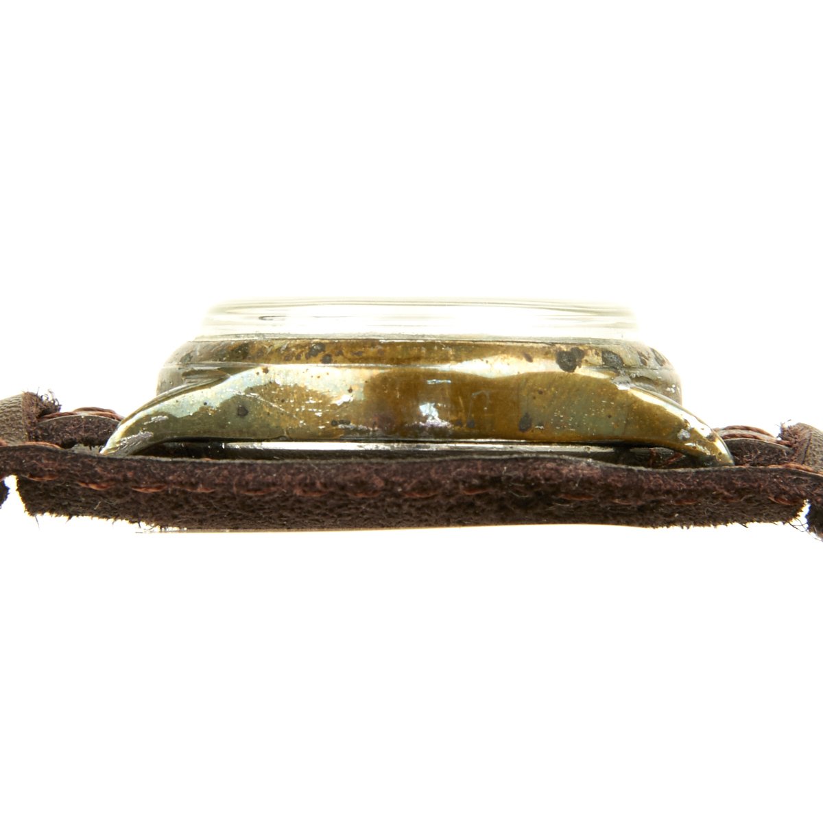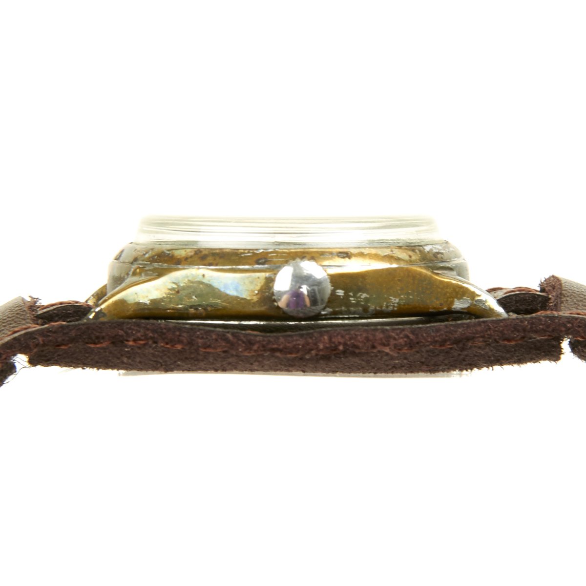 The pocket as well as the wristwatch had screwed backs and were shock resistant. The dial was black with a small second hand with radium digits and hands. The back was marked "D.H." (Deutsches Heer), with the case number. The watches were partly deployed and written into the soldier's book, and also sold to army staff. It is not entirely clear what D H stands for. Some writers suggest the D stands for Deutsches (Germany) and the H for Heer (Army). Some prefer the interpretation given by Konrad Knirim (http://www.knirim.de/english.htm), who has written that the D stands for Dienstuhr (Service Watch) and the H = Heer (Army). However, it is not entirely clear that DH watches were originally intended for the Army alone, given documented instances where the service record books of members of the Luftwaffe (Air Force) have been found with DH watch serial numbers written as issued to these troops. In addition to watches marked with DH, there are some identical watches with only the letter D in front of the serial number and no H after the number. Collectors speculate that these D only watches were for the Luftwaffe. Others speculate that these watches were used by Para-military personnel such as those working in railroads. However, given that the WWII German records have been lost we really don’t know for sure how these watches were issued.