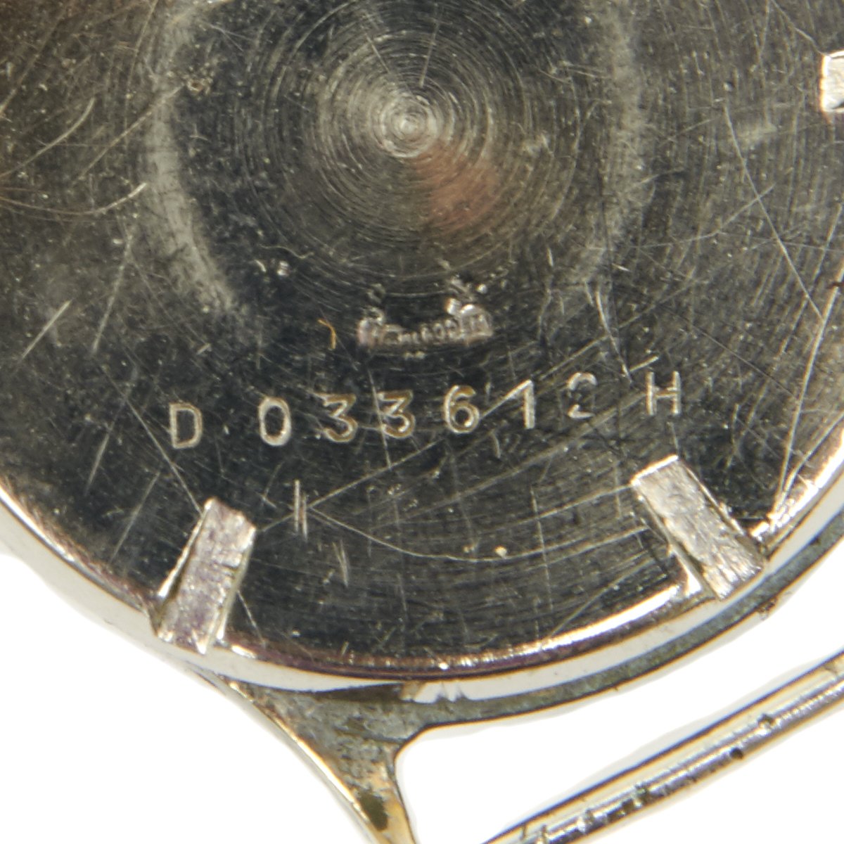 This example has an original metal chrome case with stainless steel screw-back. Reverse of screw-back impressed with issue number D 033612 H.