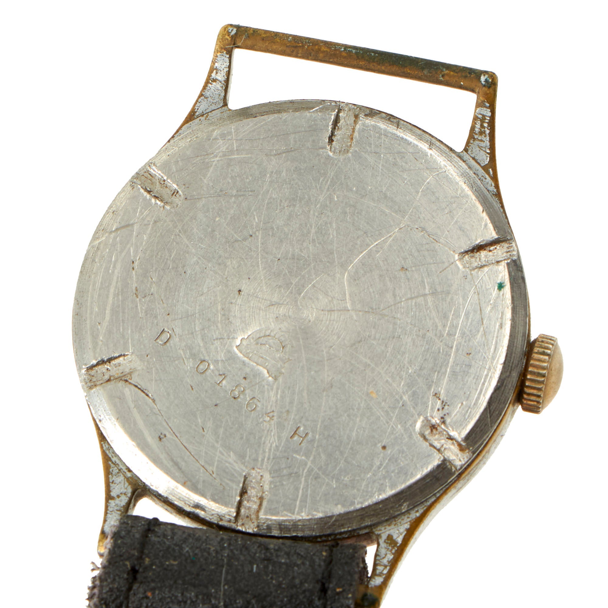 The pocket as well as the wristwatch had screwed backs and were shock resistant. The dial was black with a small second hand with radium digits and hands. The back was marked "D.H." (Deutsches Heer), with the case number. The watches were partly deployed and written into the soldier's book, and also sold to army staff. It is not entirely clear what D H stands for. Some writers suggest the D stands for Deutsches (Germany) and the H for Heer (Army). Some prefer the interpretation given by Konrad Knirim (http://www.knirim.de/english.htm), who has written that the D stands for Dienstuhr (Service Watch) and the H = Heer (Army). However, it is not entirely clear that DH watches were originally intended for the Army alone, given documented instances where the service record books of members of the Luftwaffe (Air Force) have been found with DH watch serial numbers written as issued to these troops. In addition to watches marked with DH, there are some identical watches with only the letter D in front of the serial number and no H after the number. Collectors speculate that these D only watches were for the Luftwaffe. Others speculate that these watches were used by Para-military personnel such as those working in railroads. However, given that the WWII German records have been lost we really don’t know for sure how these watches were issued.