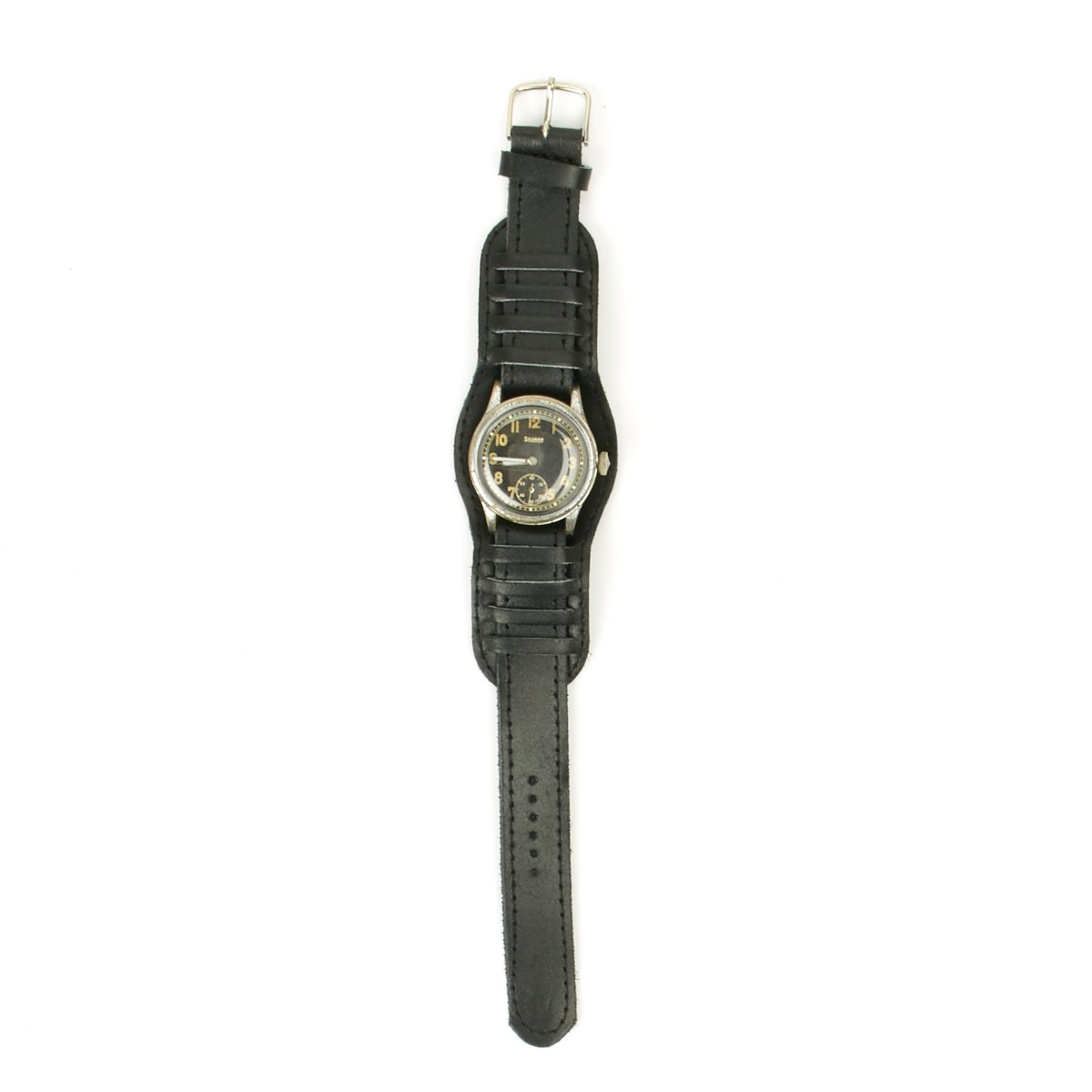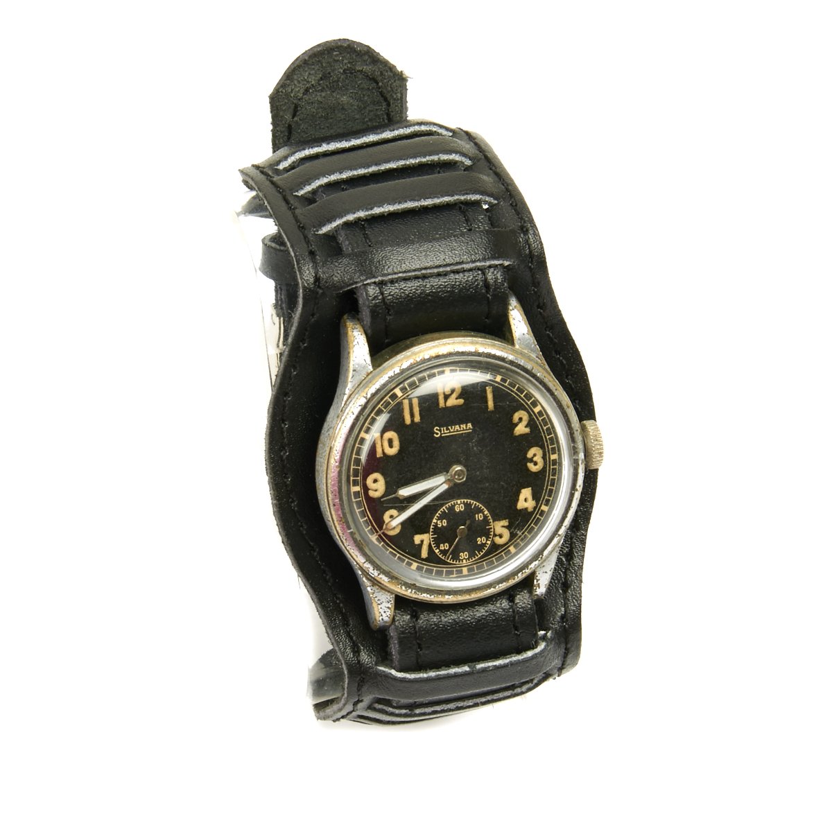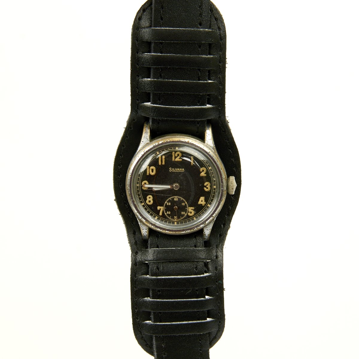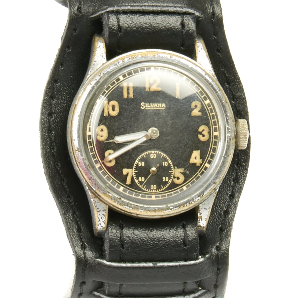 Original Item: Only One Available. This is a rare vintage 1939-1944 Swiss made, under military order for Germany, mechanical men's wrist watch by Silvana. Known as a "D-H" service wristwatch of the German Army for Wehrmacht officers and soldiers during WWII. All of parts of watch are 100% original with the exception of the leather wristband.