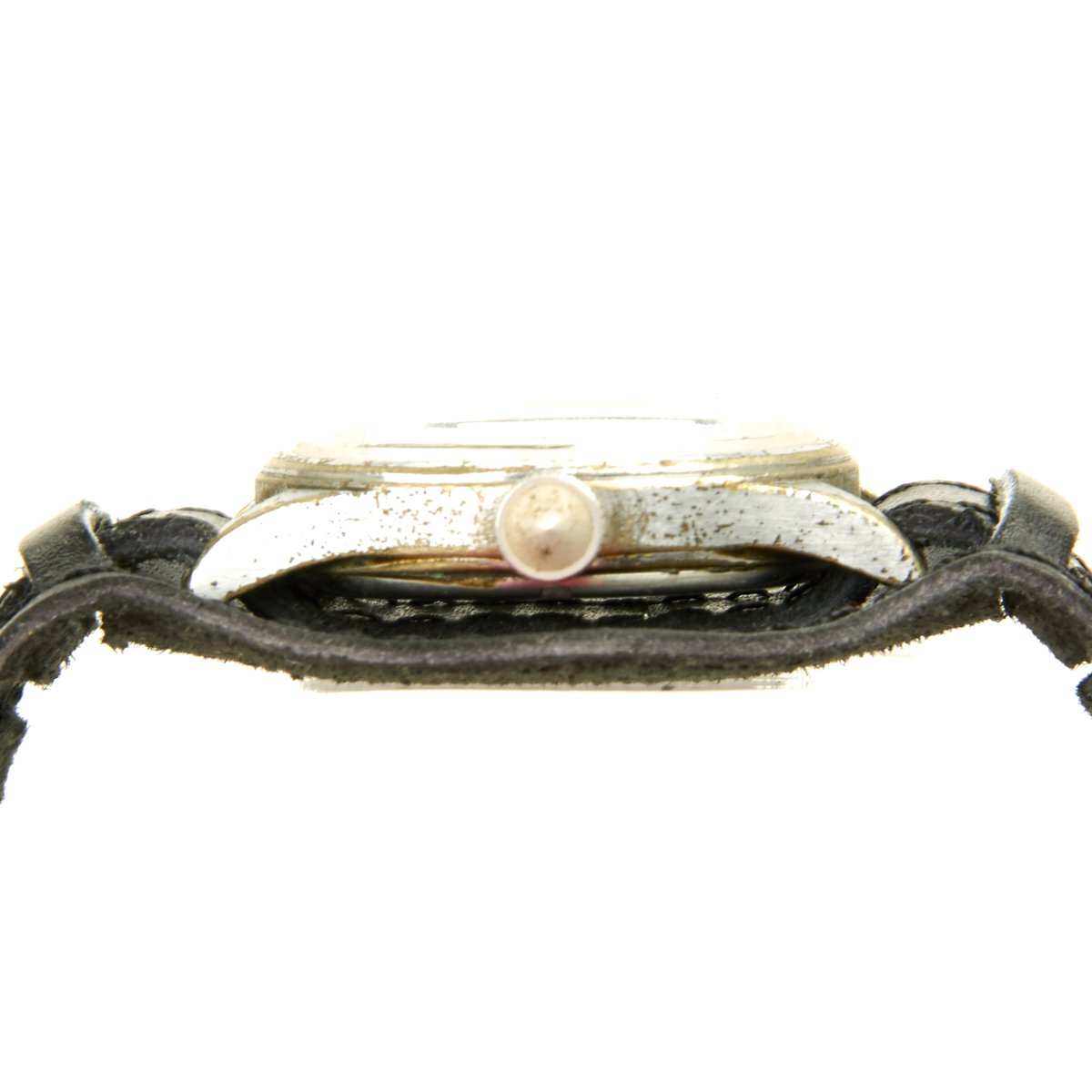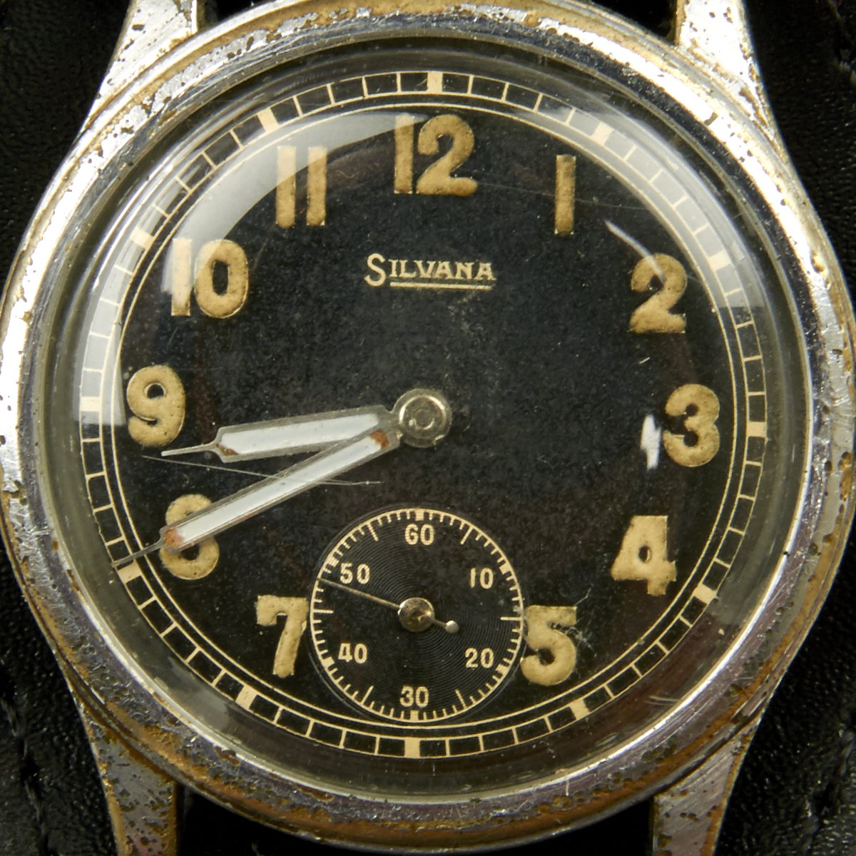 Chromium plated original crown, original black dial, military style, marked on face: