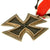 The basic design of the WWII crosses is a central Tatzenkreuz (cross pattée) struck from iron and mounted in a silver frame which has a raised crenulated decorative border. The obverse of the cross bears the date 1939 under a "mobile" swas. Second class crosses would have a ring at the top where a ring was attached, and had more markings on the back. The first class award, however, was meant to attach directly to the front of the uniform.