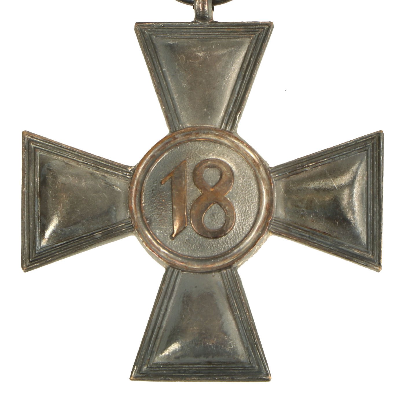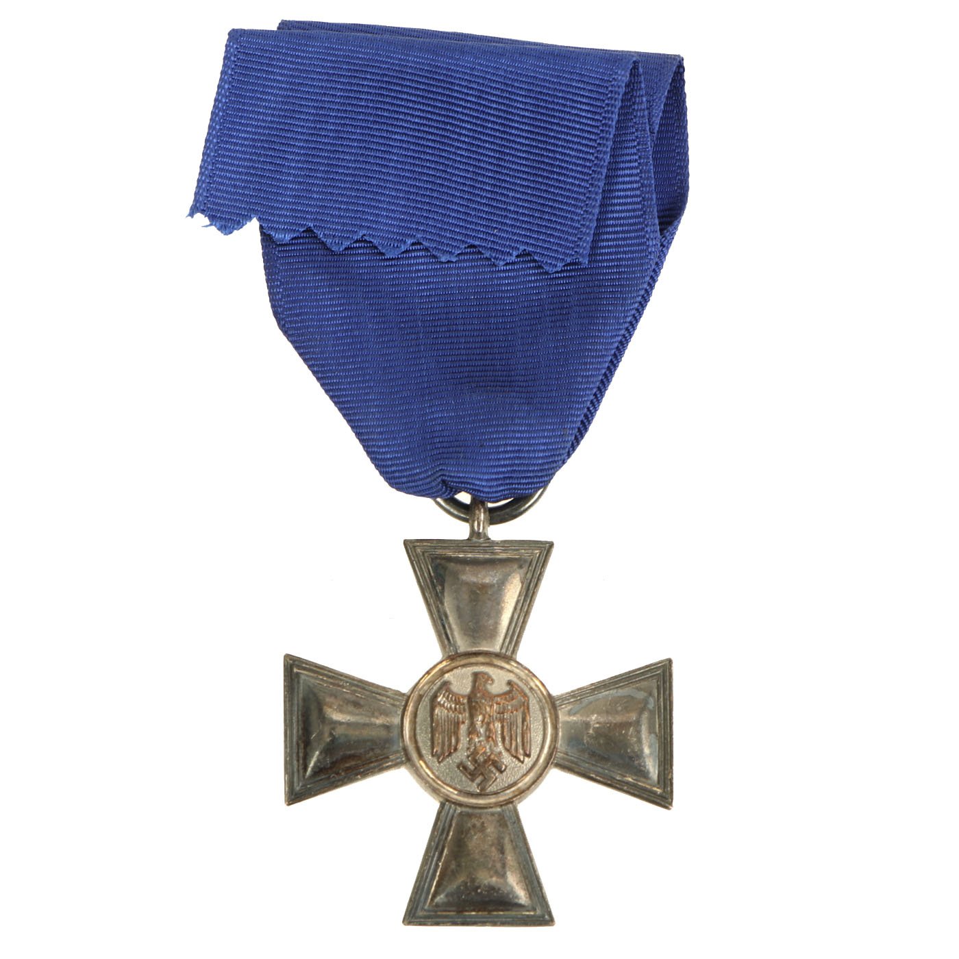 Each branch of the Wehrmacht (army, navy, and air force) maintained their own version of the Long Service Award and the decoration was issued for four years (silver medal – fourth class), 12 years (gold medal – third class), 18 years (silver cross – second class), 25 years (gold cross – first class), and 40 years (1939 special class). The 40 years special class service award was introduced on 10 March 1939.