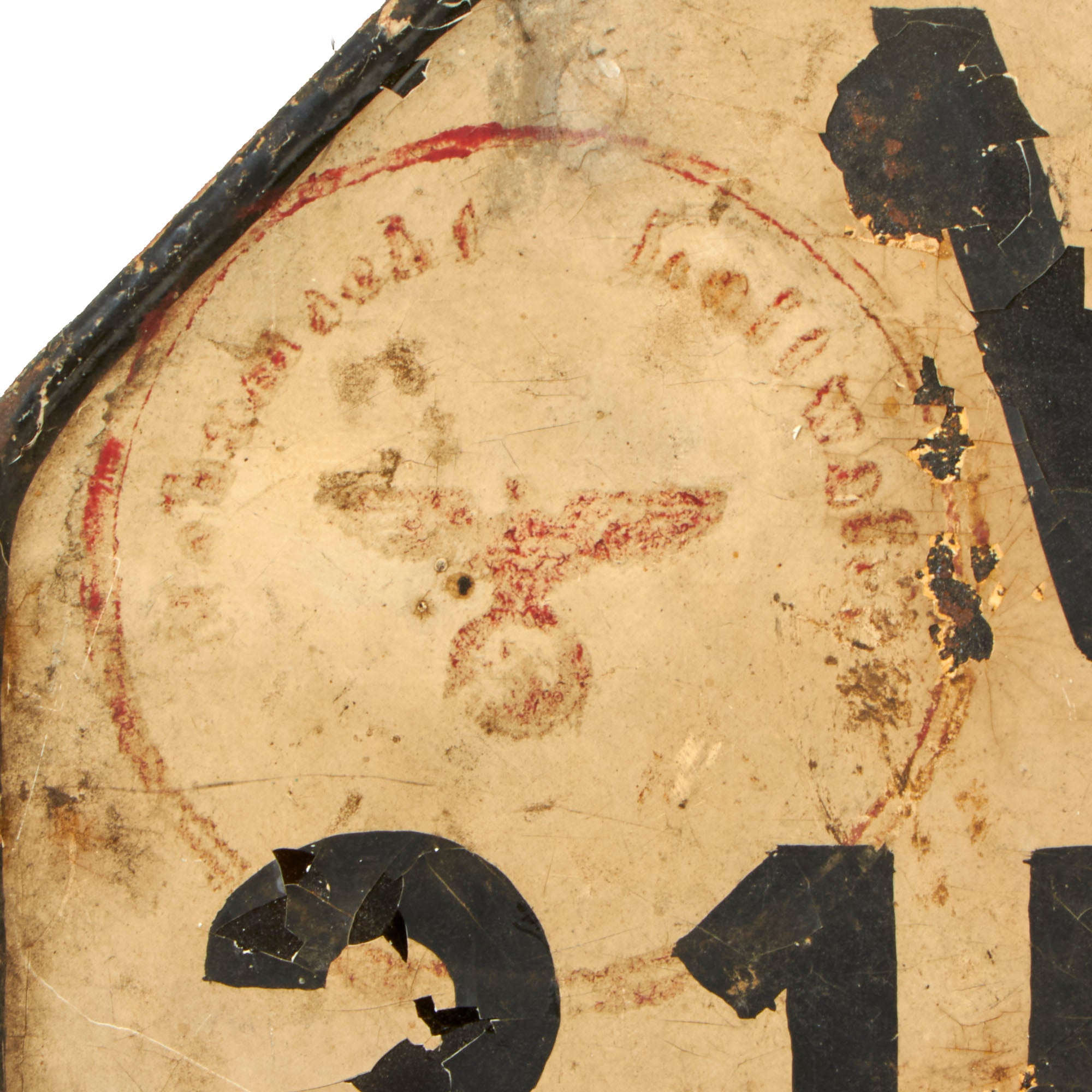 • Original Item: One-of-a-kind. Measuring 8 inches wide and 4 3/4 inches tall (8 inches counting the brackets), this is a very nice condition steel construction white and black painted motorcycle license plate. This type would be installed on the top of the rear fender of military motorcycles during the Third Reich period. It is marked with identification number WL-315 234 where "WL" stands for "Wehrmacht Luftwaffe", so this is a Luftwaffe Air Force issue license plate. The 6 digit registration number indicates WWII issue, while a 5 digit number would indicate pre-war. This example even has two red Luftwaffe depot stamps on the front, which we almost never see!