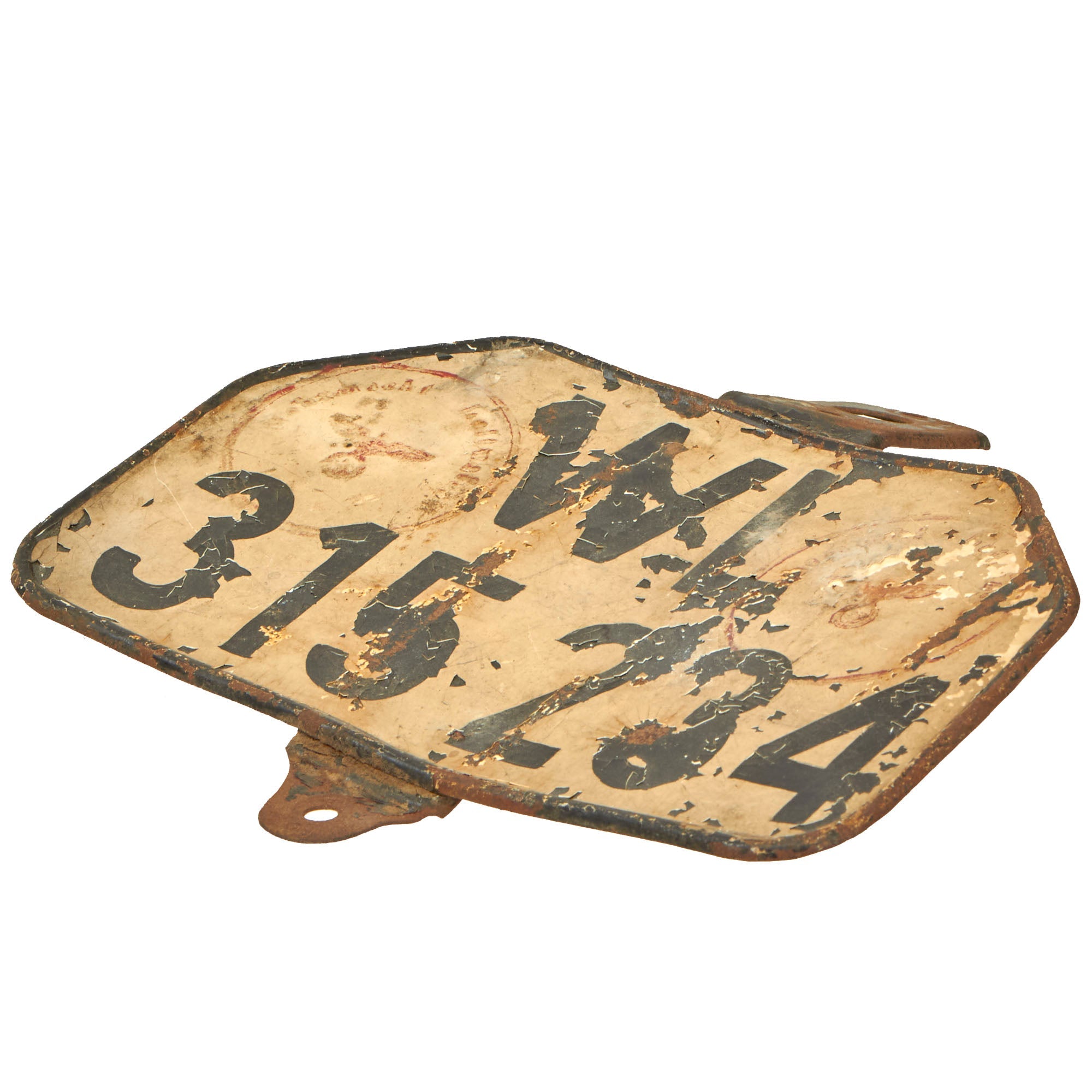 Original German WWII Wehrmacht Luftwaffe Army Motorcycle Rear Fender License Plate with Depot Stamps - WL-315 234