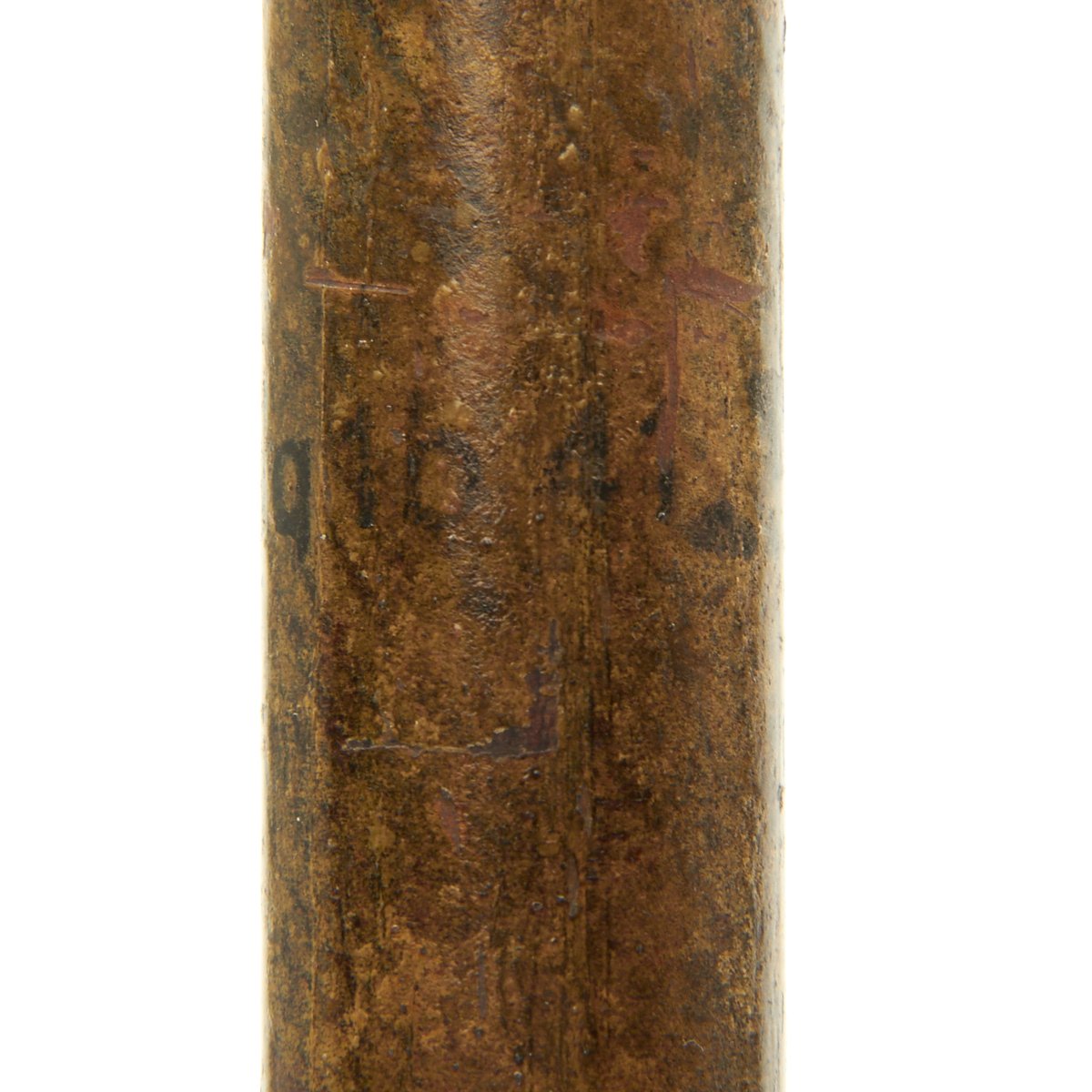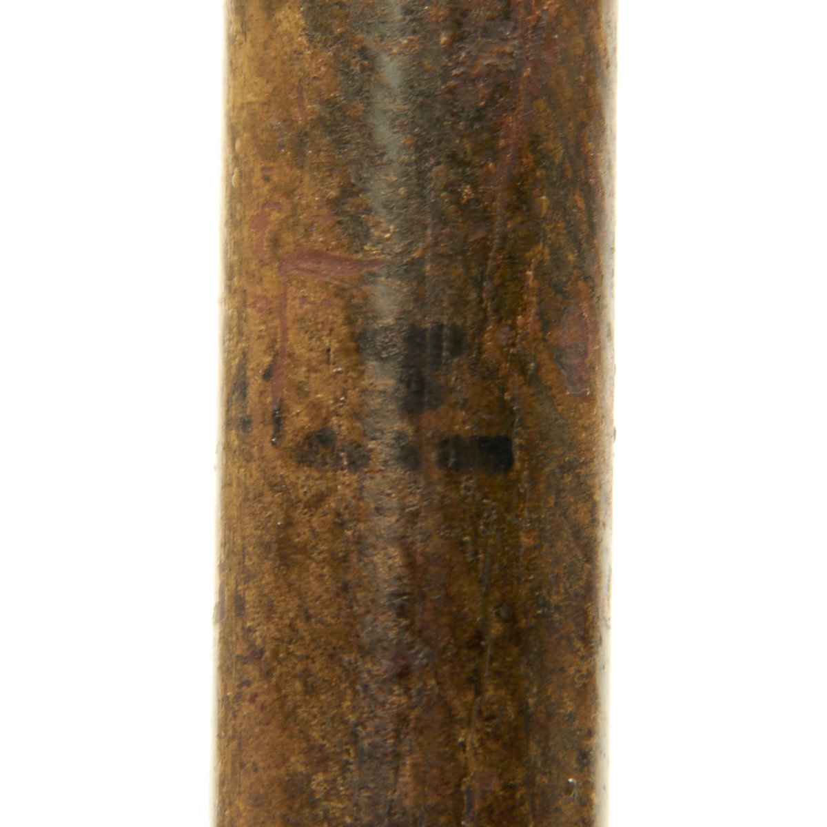 On this example, the shaft is made of bakelite, and is marked edq 1b 41, followed by a Waffenamt inspection mark. This indicates 1941 manufacture by Deutsche Waffen- & Munitionsfabriken AG, Werk Lübeck-Schlutup, Wesloerstrasse, an ammunition factory run by the legendary DWM. The bottom of the grenade head is marked 373-A / -008, the lot number for the grenade.