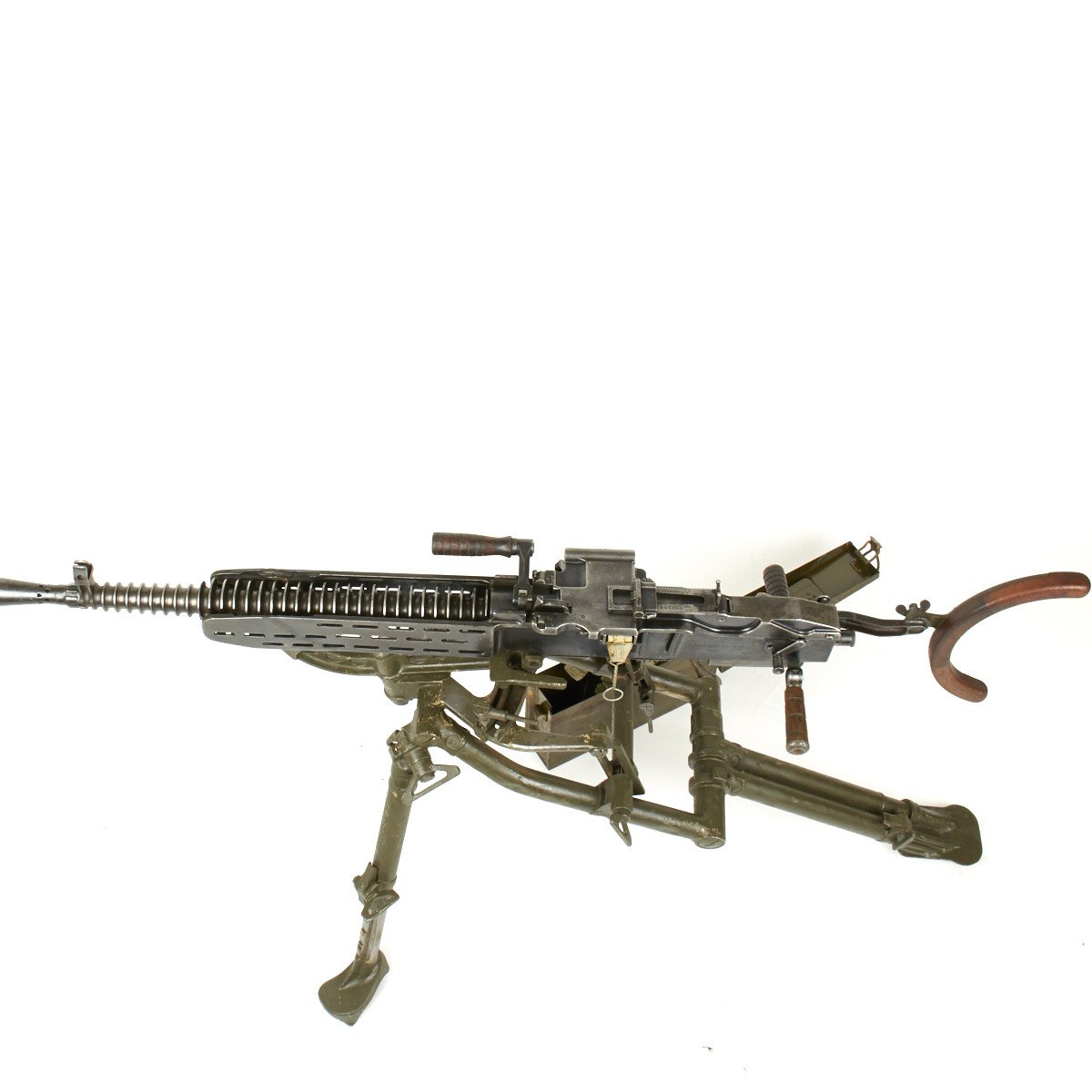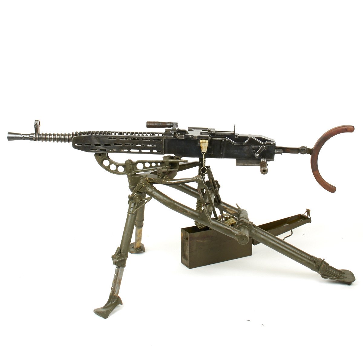 Here we offer an original German waffenamt marked ZB37(t) display machine gun rebuilt from all original parts, complete on an early issue original BRNO manufactured and market tripod with the capability to be transformed into anti aircraft configuration.