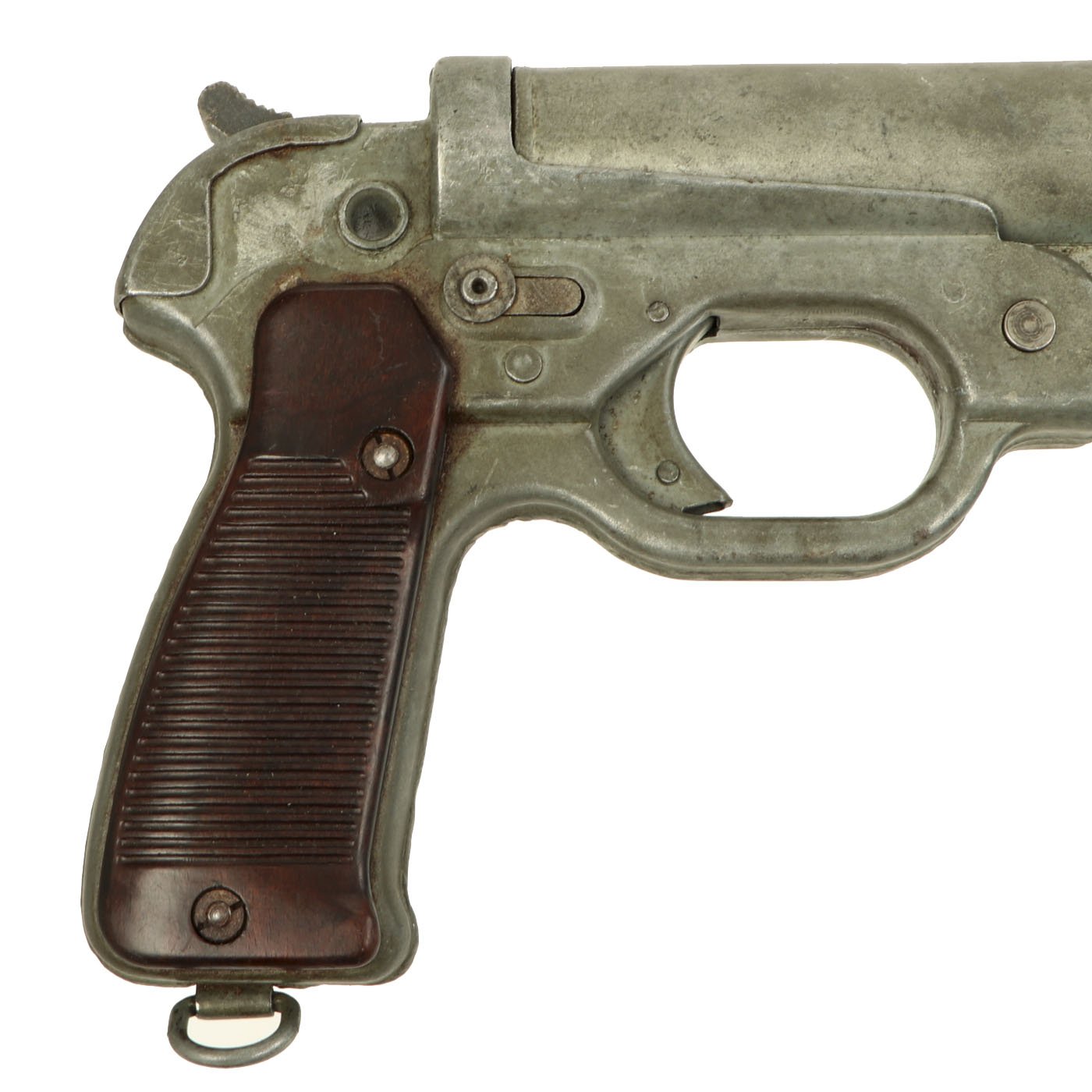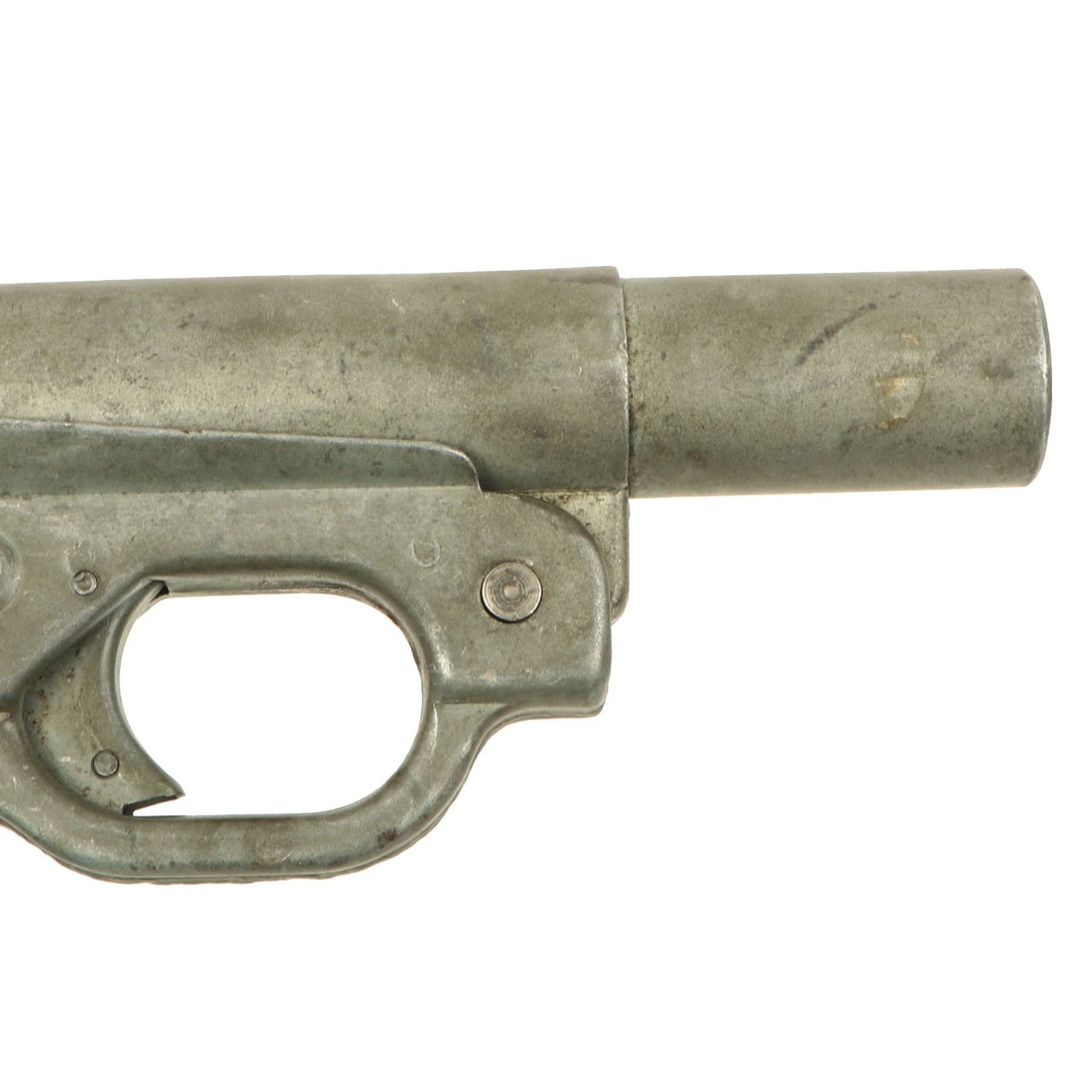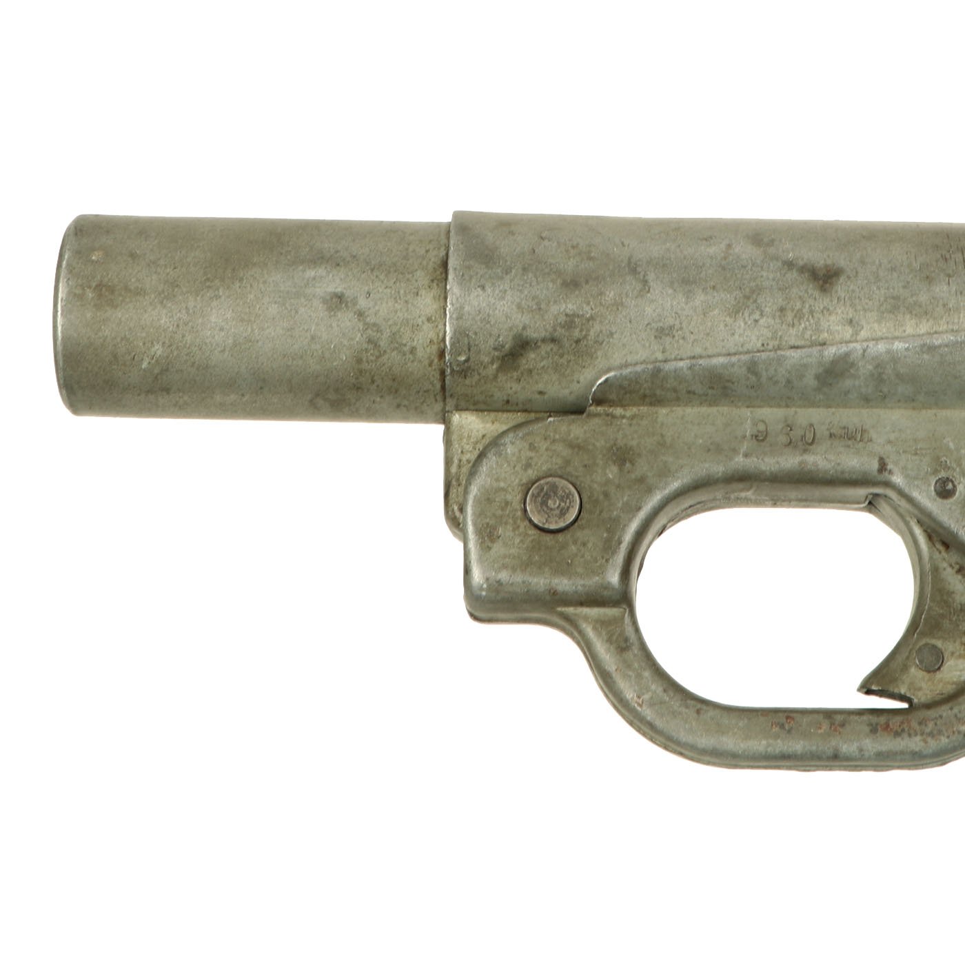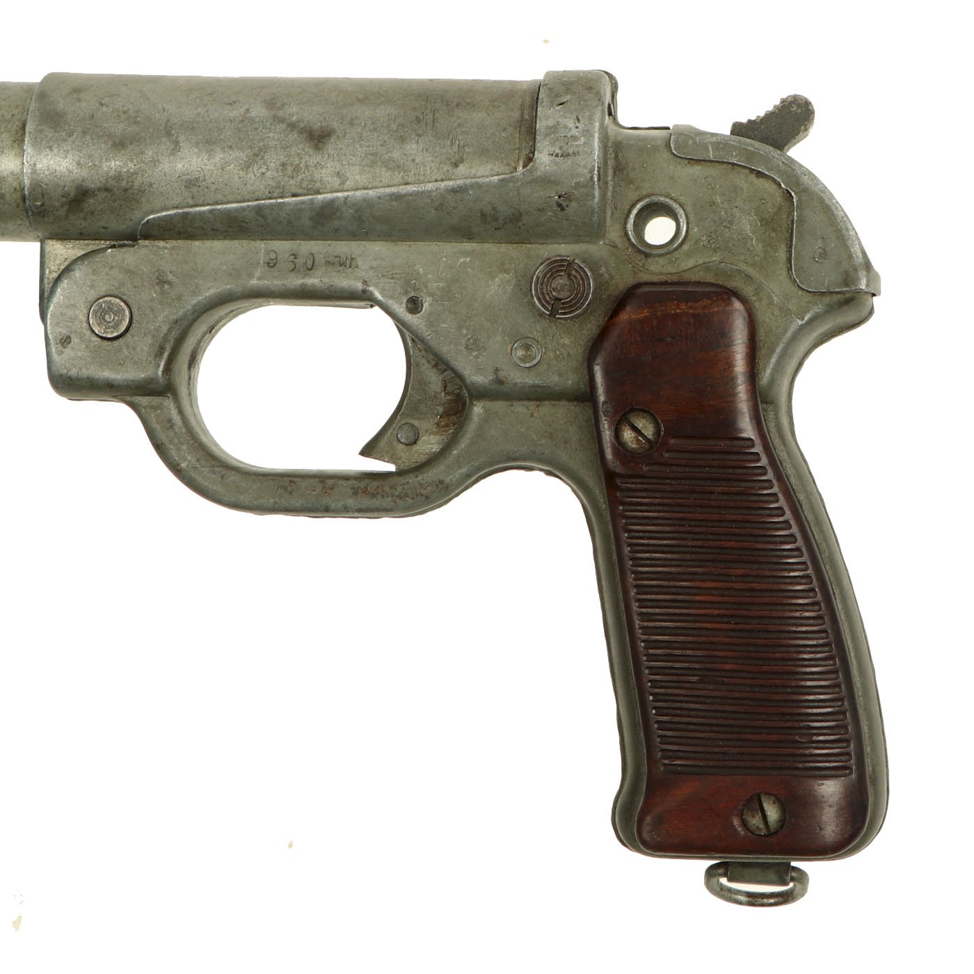 Original item: One of a Kind: This is a wonderful example of the classic German Wehrmacht LP-42 signal flare pistol, which entered service in 1943. The Leuchtpistole 42 is of all steel construction, uses 26.5 mm flares, and was available in zinc or black finish. It superseded the previous LP34, which was made of aluminum, and took longer to make than the stamped steel body of the LP42. This example bears original German maker code euh, which stands for C. & W. Meinel-Scholer, located at Klingenthal in Sachsen (Saxony). To the left of this it is stamped with serial number 960, and is nicely Waffenamt WaAA68 marked on the left side of the breech.