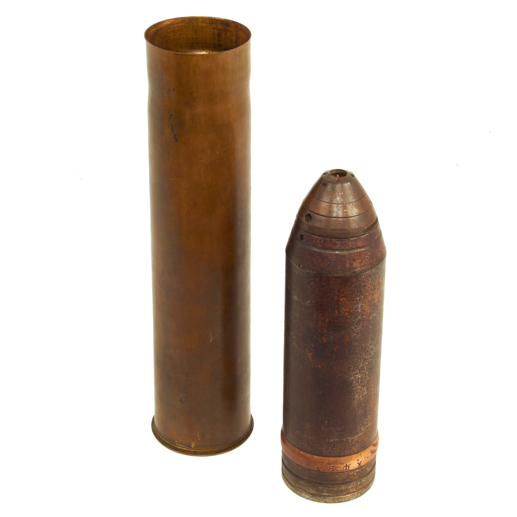 Original Item: Only One Available. Now this is a different 75mm round than we are usually familiar with! This is a Greek produced 75mm round, as used with the 75mm Gun M1916. The round is totally inert and is no longer capable of being used as a destructive device making it compliant with the current BATF regulations governing ordnance.