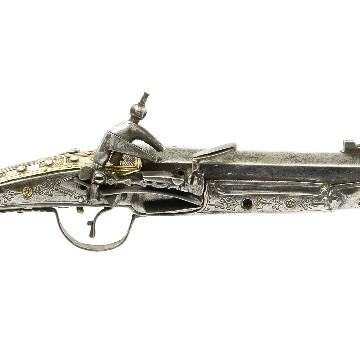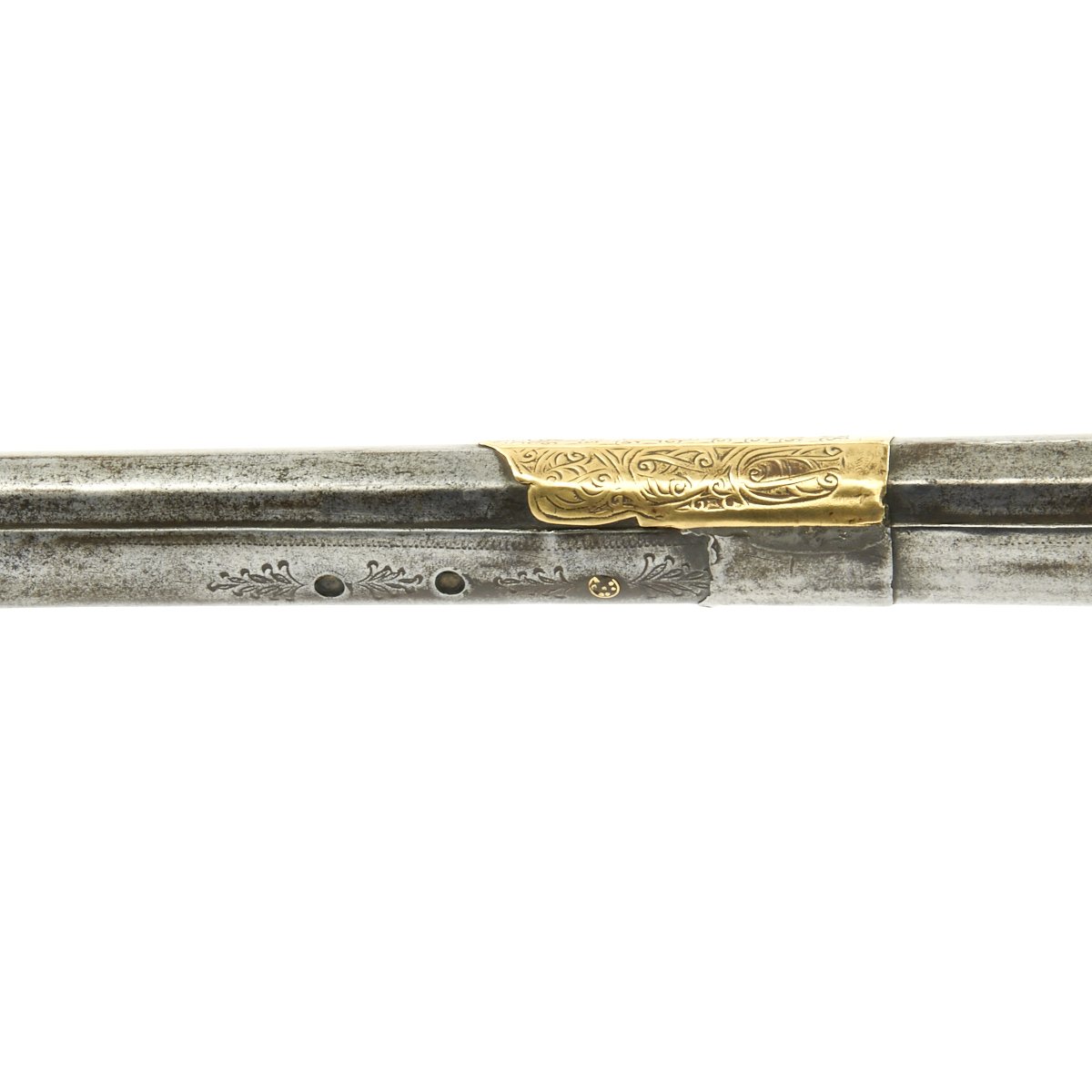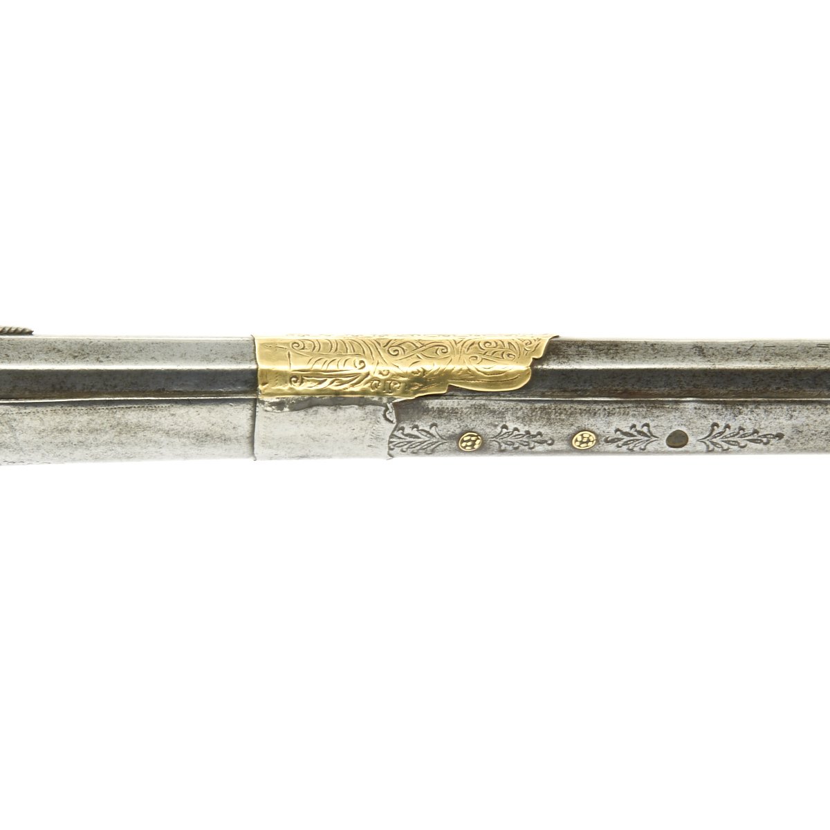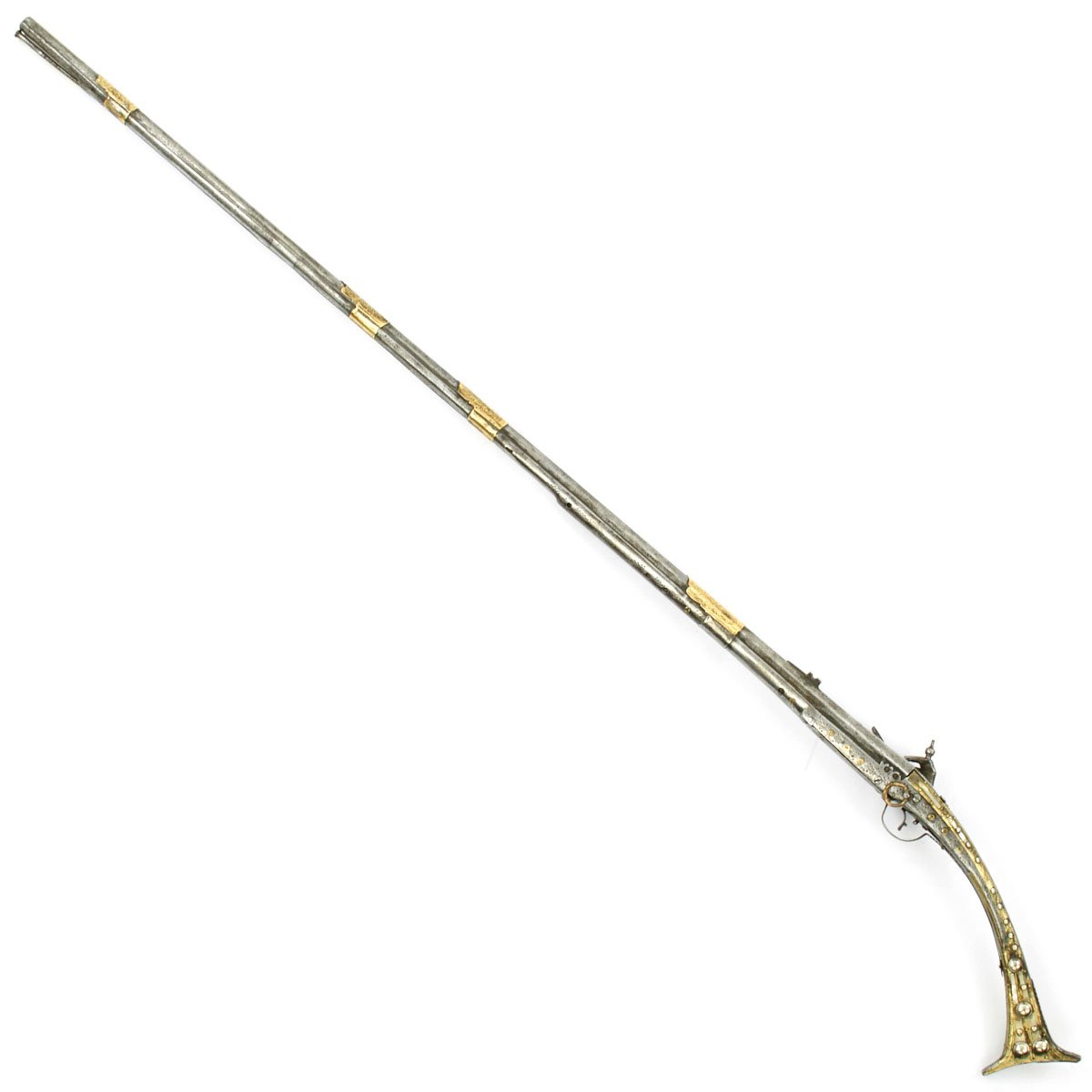 Measuring 66" in overall length, the barrel alone is 52" long. Complete with its original all steel ramrod this really is a truly excellent example of this very unusual weapon that plagued European travelers who ventured into that region of the Ottoman Empire.